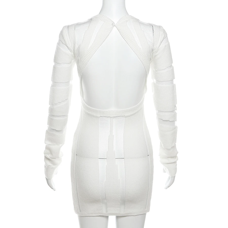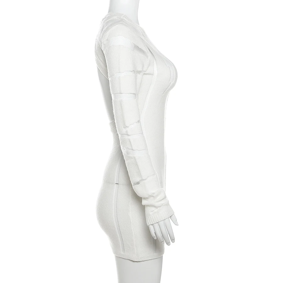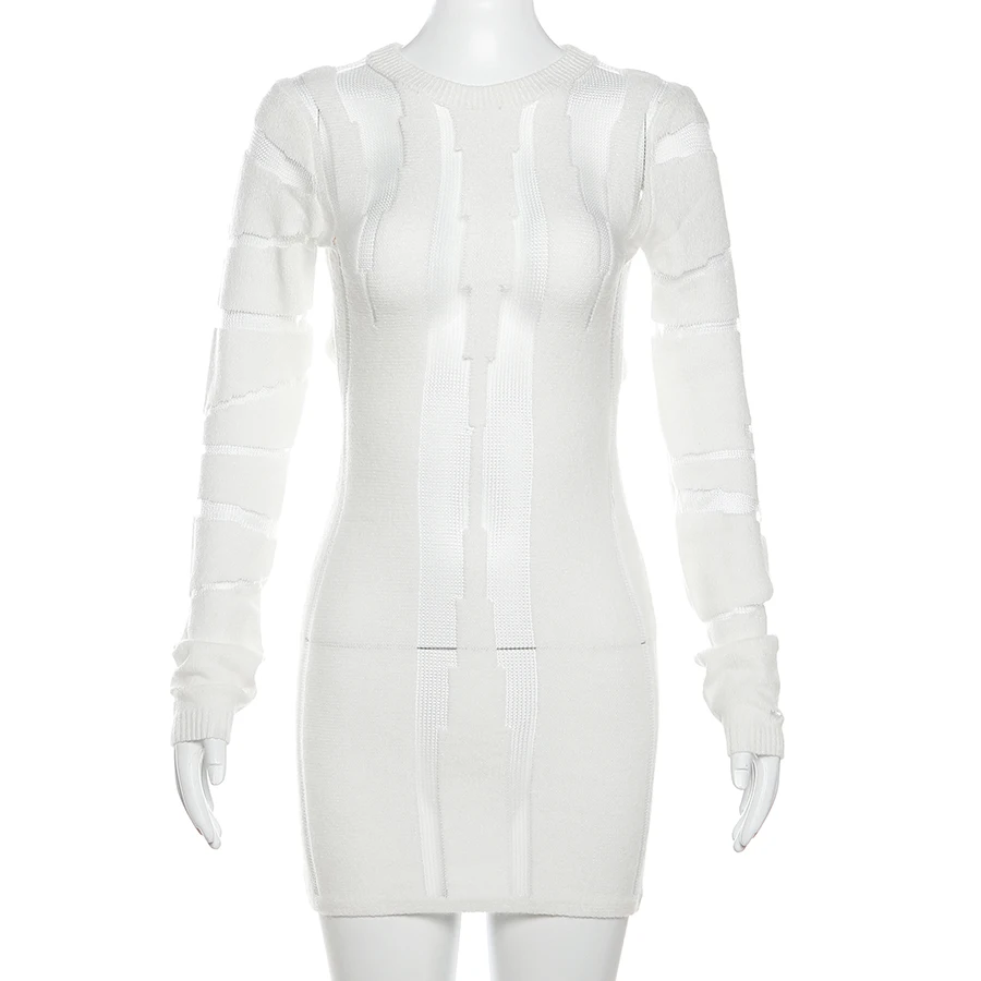 W23D33062 Fish Net Patchwork Knit Dresses Ladies Elegant Dress Women