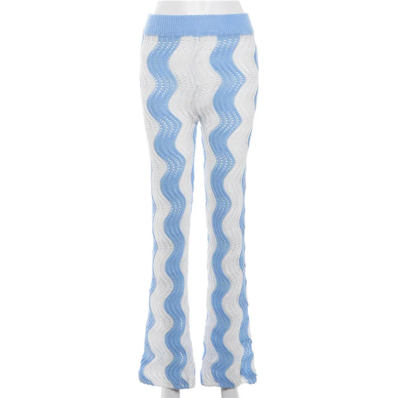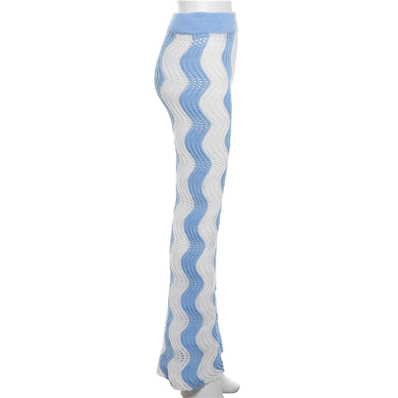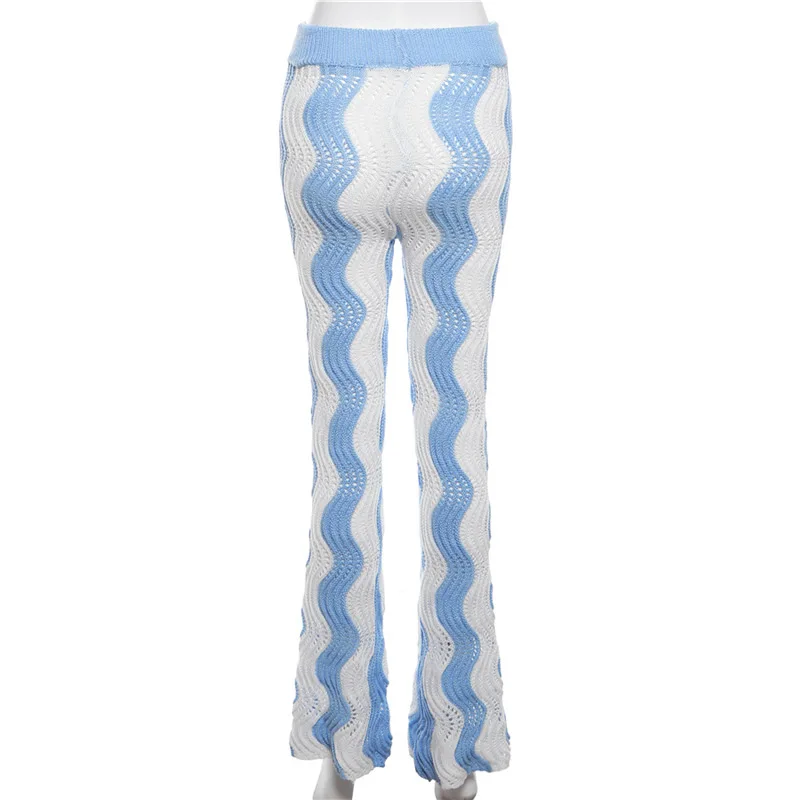 W23P34658 New design fall 2024 women clothes fashion stripped flared pants knitted trousers casual wide leg women's pants