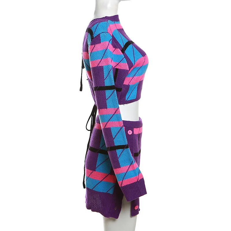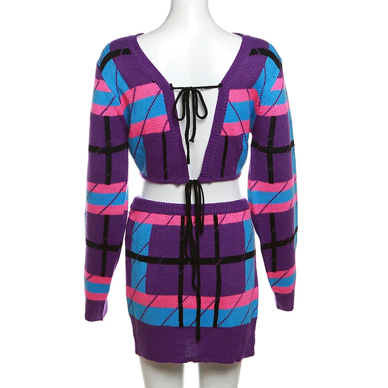 W23S35771 Wholesale 2024 New Arrivals Fashion Knitted Sweater 2 Piece Skirt And Top Set For Women