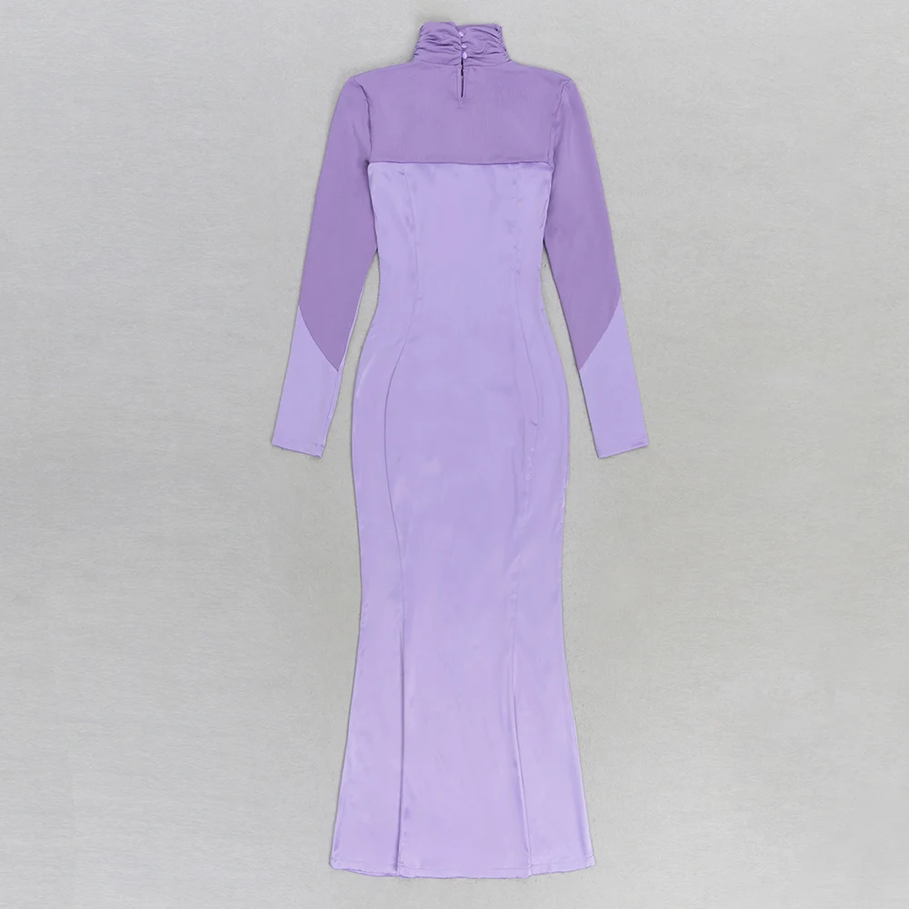 WBH0346 Fashion Purple Half-High Neck Fishtail Evening Dress Long Sleeve High Quality Formal Party Elegant Slim Woman Dresses