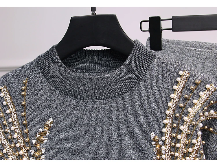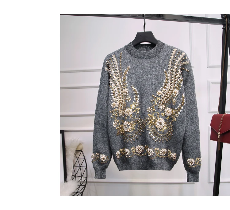WC2202 Womens New Arrivals Ladies Sweater For Winter Crewneck Sweater Women Top Seller Fabric Pearl Decorations