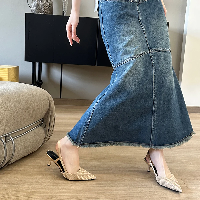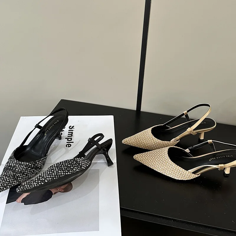 Weave Designer Kitten Heels 2024 Women Shoes Fashion Pumps Pointed Stiletto Ladies Sandals