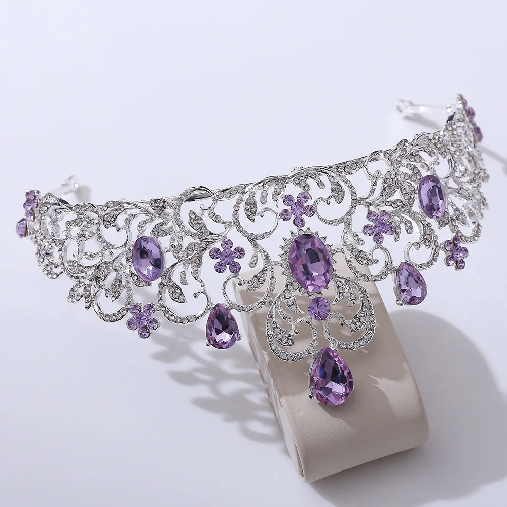 wedding crown for bride Purple Crown Mixed Designs Purple Wedding Bride Rhinestone Crystal Tiaras Crown for Bridal Queens Corona