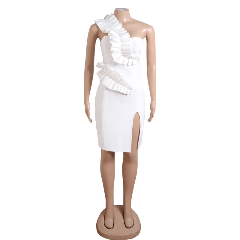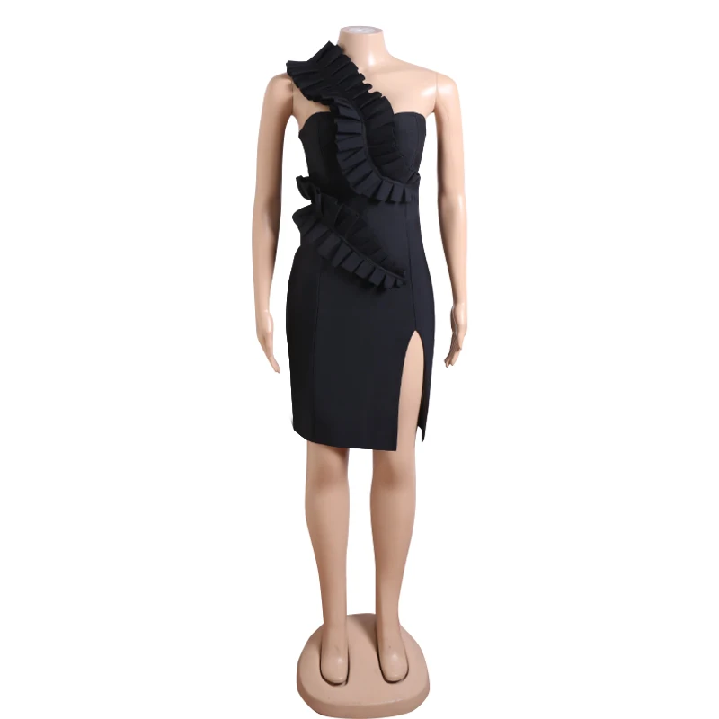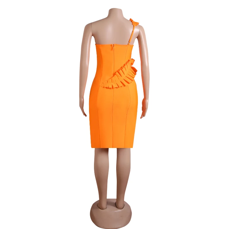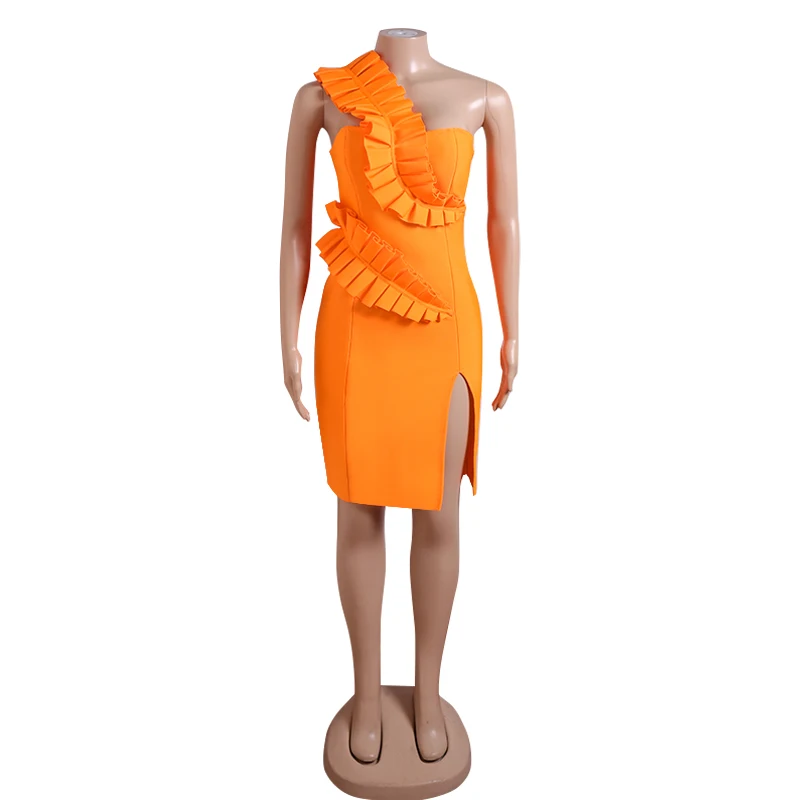 Wedding Guest Orange Dress Polyester Evening Dresses 2023 Slit Ruched Ruffle Party Clothing