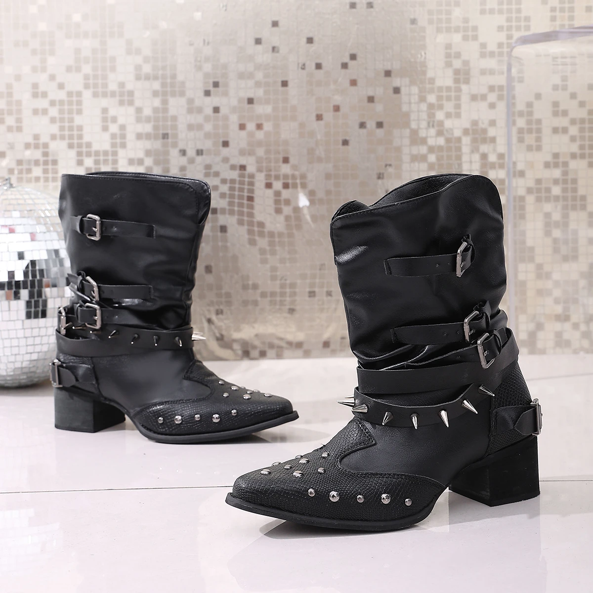 Wedge Single Shoes Four Seasons Square Toe Sleeve Metal Belt Buckle Anti-Slip Wear-Resistant Short Shoes