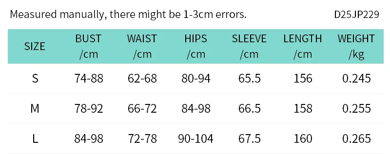 size_info: {"sizeInfoList":[{"length":{"cm":"156","inch":"61.42"},"size":"S","vid":100014064},{"length":{"cm":"158","inch":"62.20"},"size":"M","vid":361386},{"length":{"cm":"160","inch":"62.99"},"size":"L","vid":361385}]}