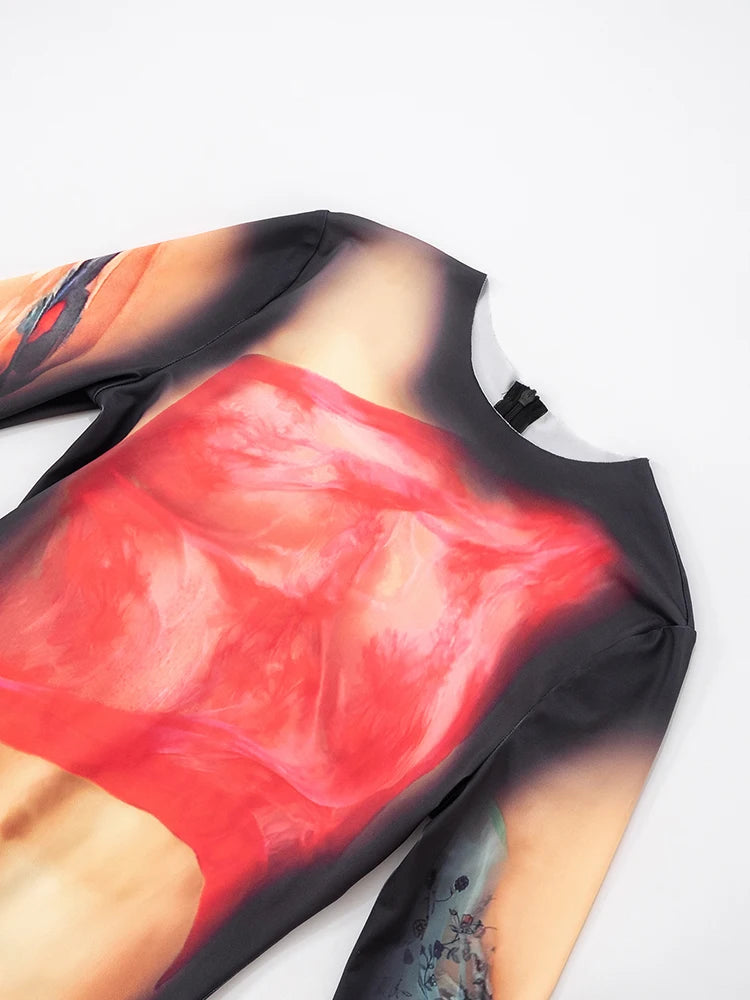 Weird Puss Colorful Print Jumpsuit Women Sexy o-Neck Full Sleeve Skinny Peach Hip Hot Girls Street Fashion Wild Style Overalls