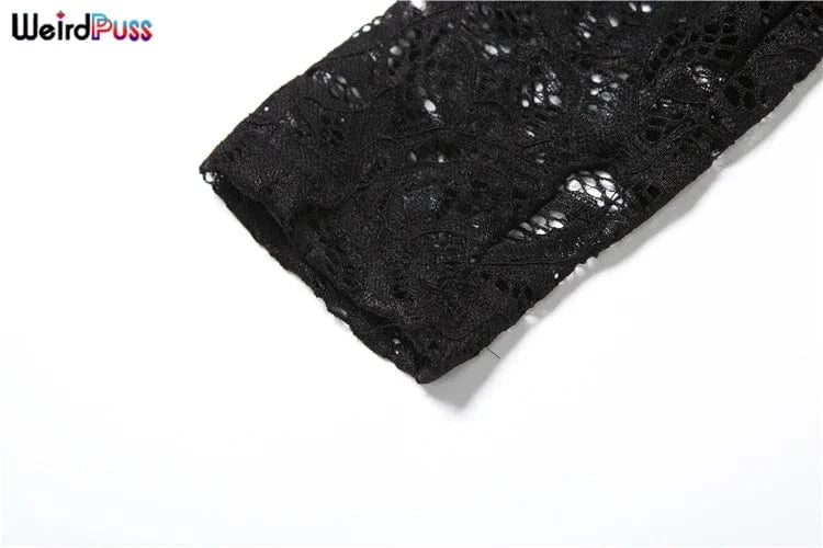 Weird Puss See Through 2 Piece Set Women Sexy Hollow Jacquard Backless Bodysuit+Leggings Tight Activity Clubwear Skinny Outfits