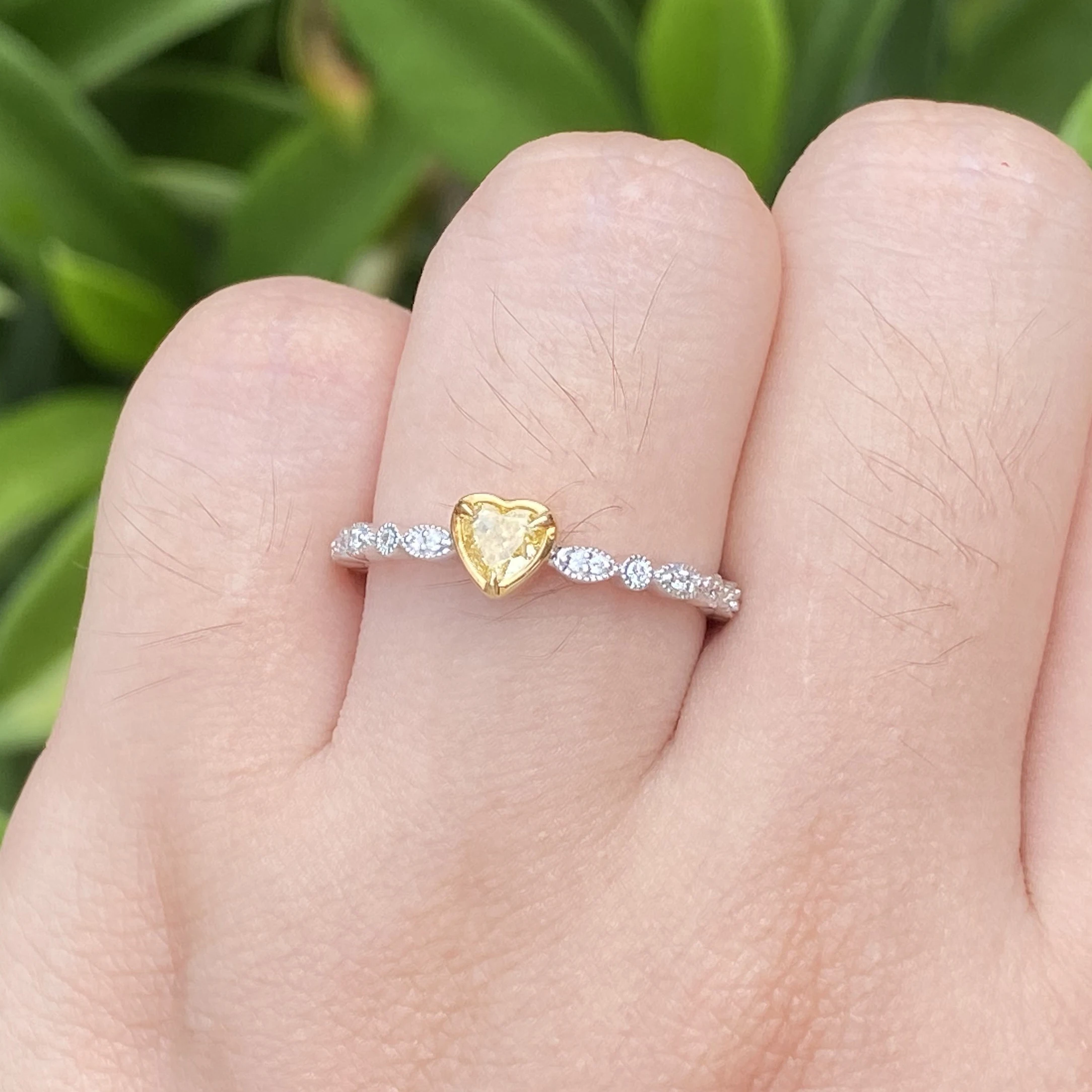 white gold jewelry fashion 18k gold jewelry heart shape natural yellow diamond gold rings