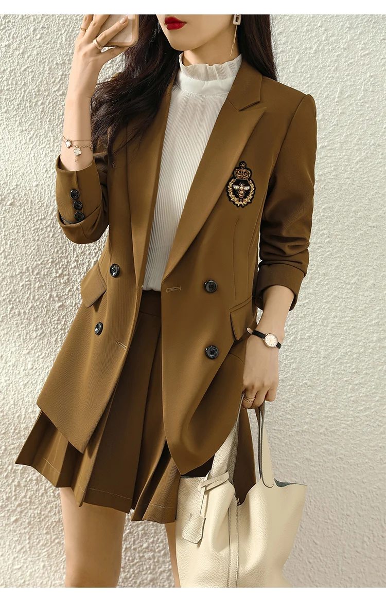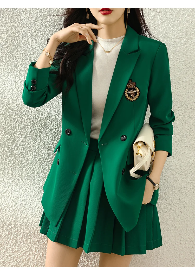 Wholesale 2 Piece Pleated skirt Set for Women Business JK Uniform Skirt Suits Office Lady Work Wear Blazer With Short Skirt