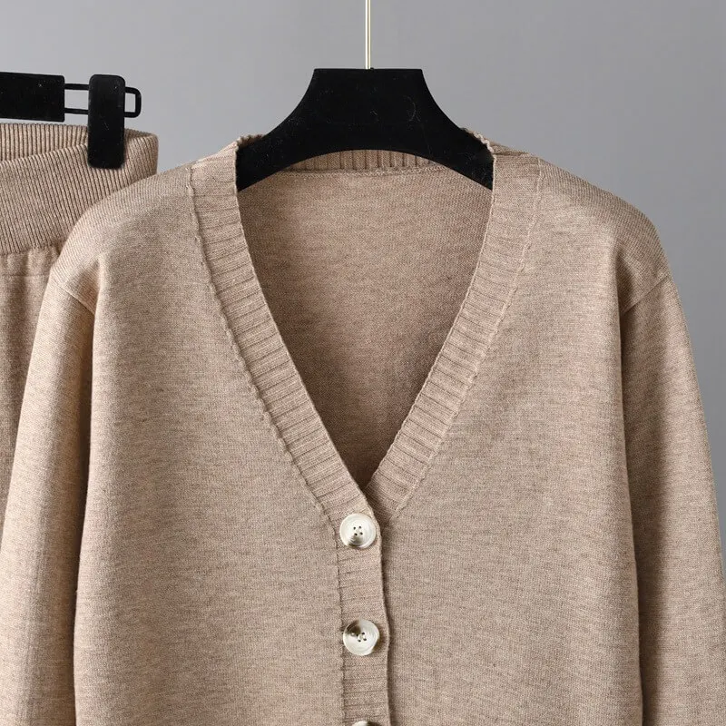 Wholesale 2023 Autumn And Winter New V-neck Cardigan Sweater Harem Pants Solid Color Cardigan Sweater Women's Set