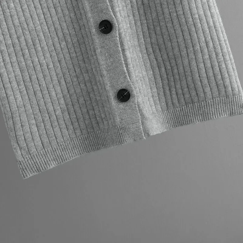 Wholesale 2023 Autumn Large Vertical Stripe Knitted Underlay V-neck Gentle Premium Bottom Women's Dress