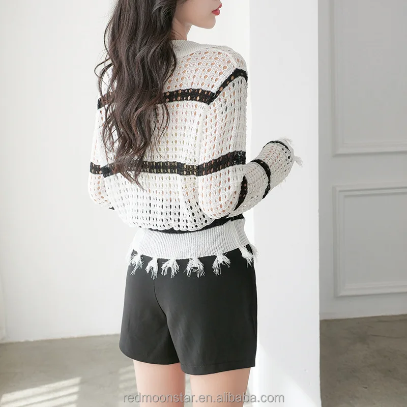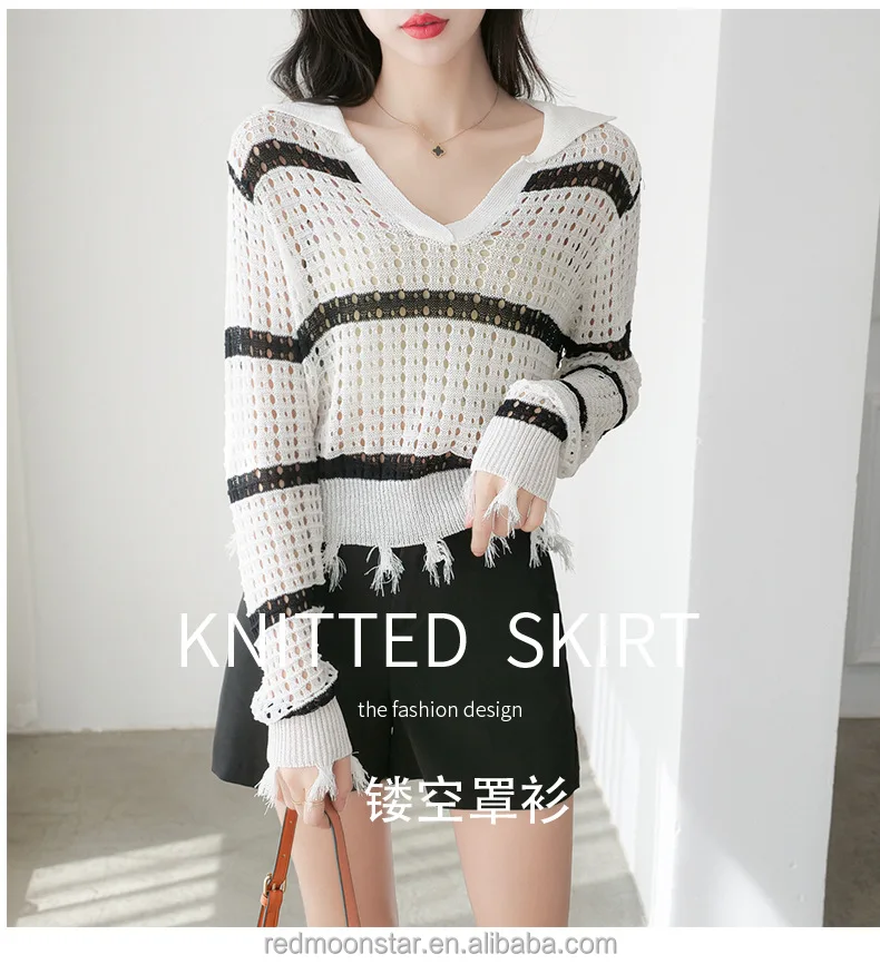 Ladies Summerr Crew Neck Sweater Mid-Long Sleeve Twisted Rope Sweater Short Sleeve Top Support Custom Anti-pilling