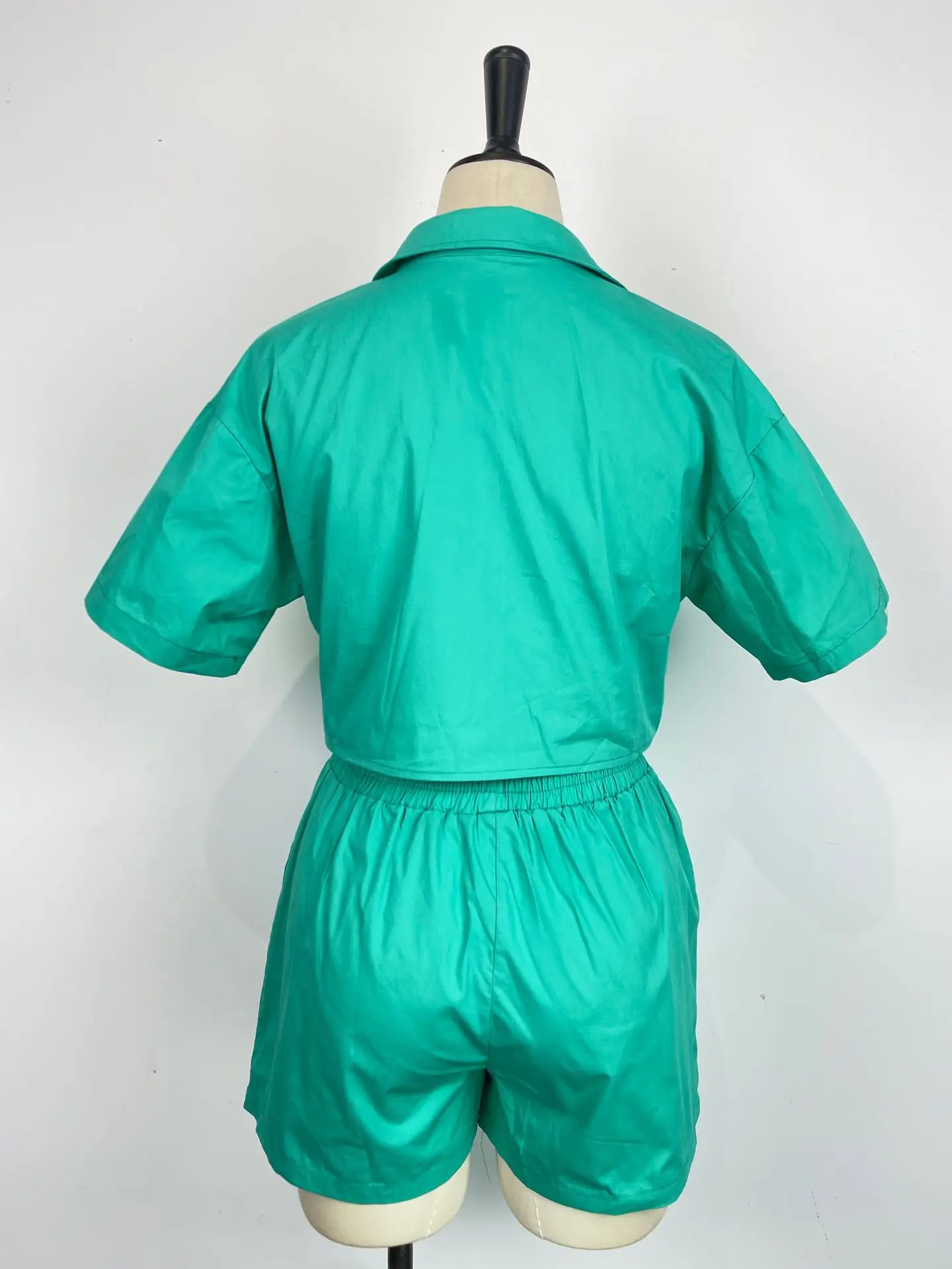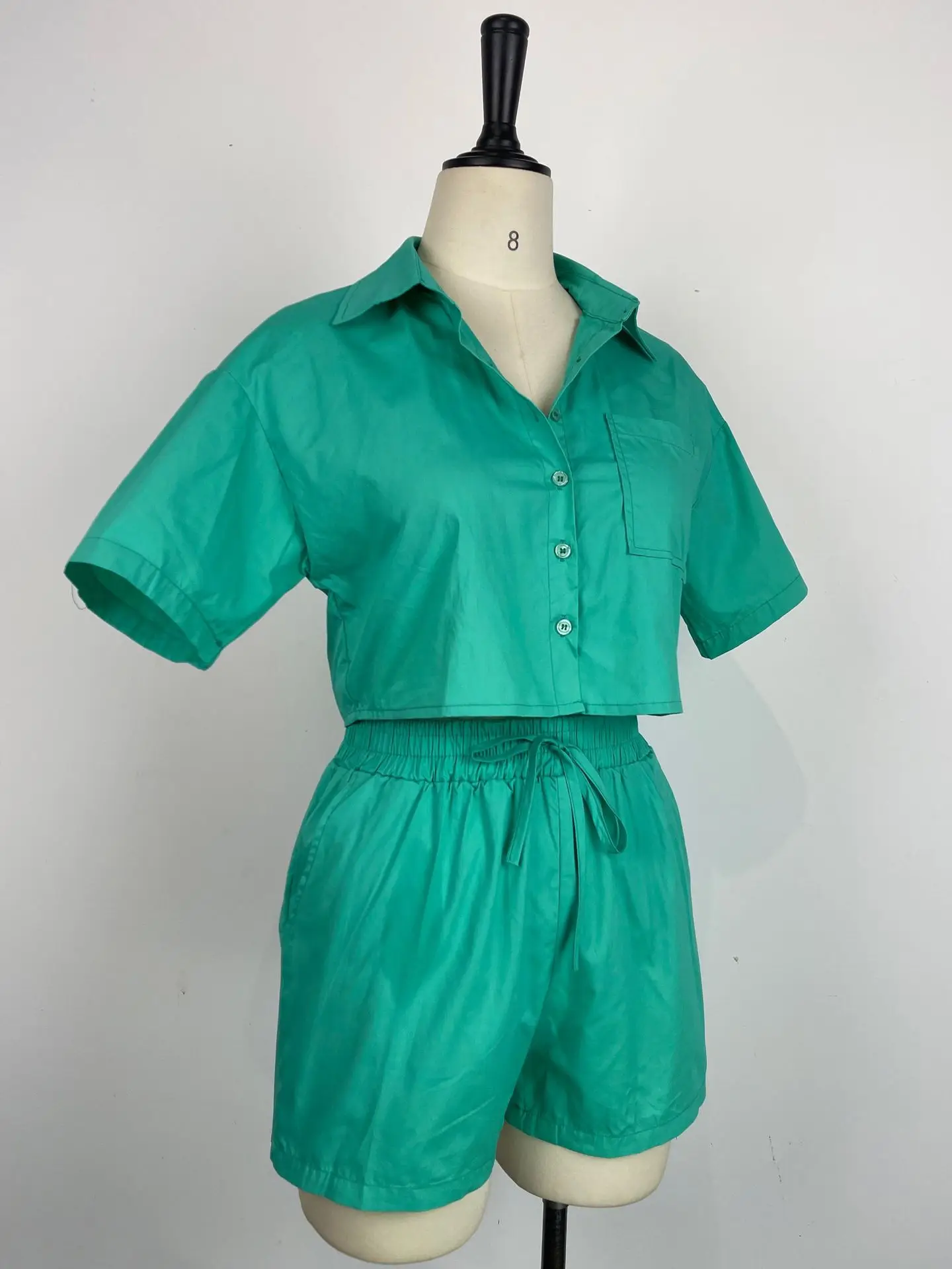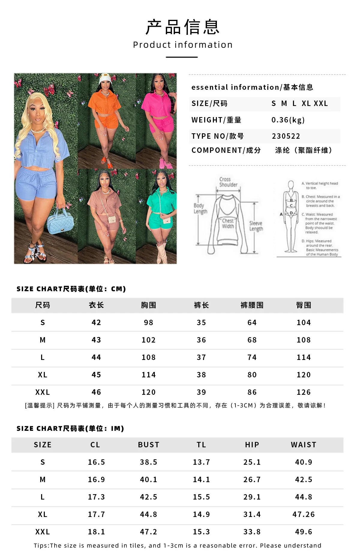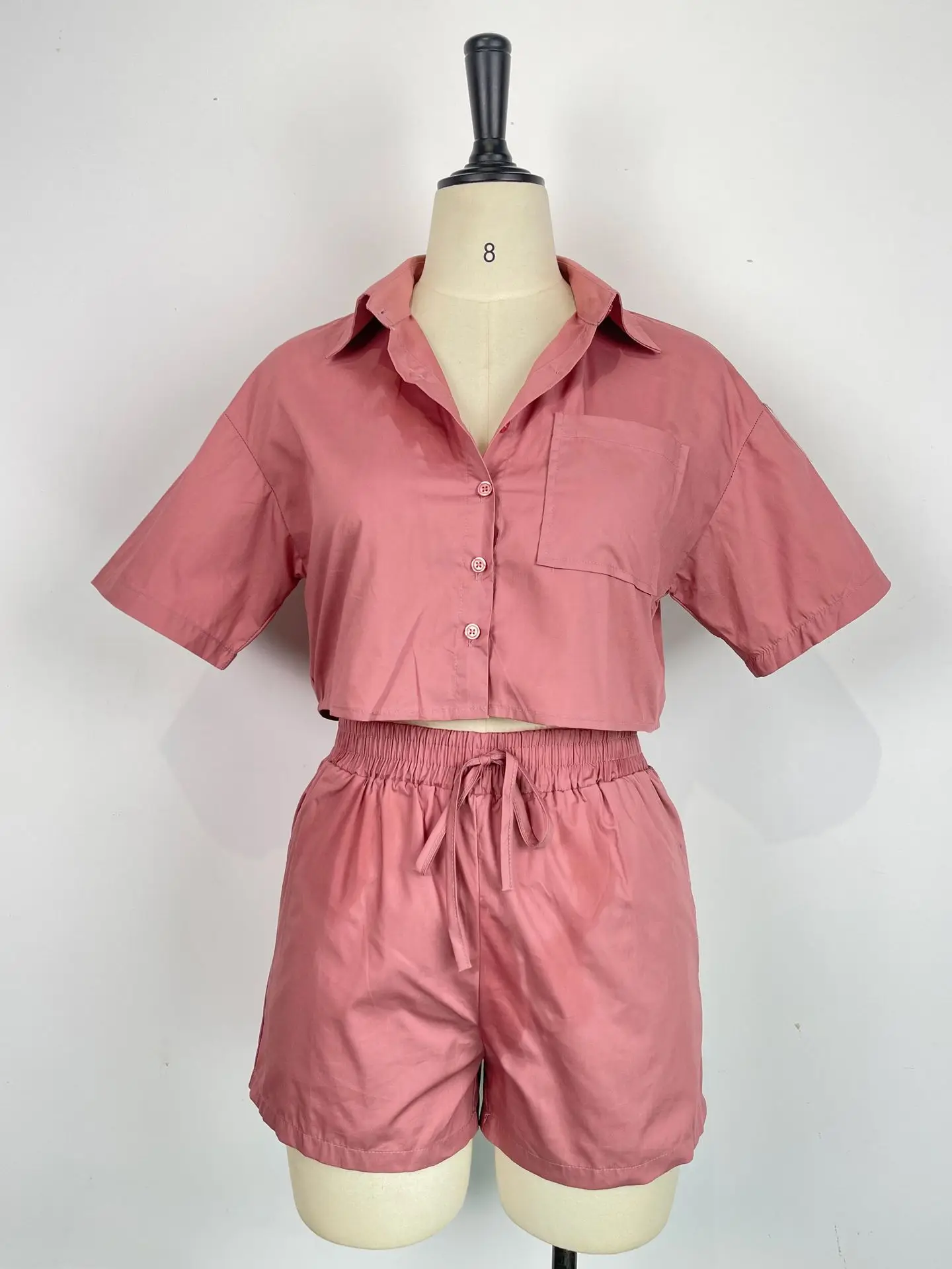 Wholesale 2023 New Arrivals Women's Clothing Solid Summer With Pockets Shorts Sets Womens Shirts Shorts Set