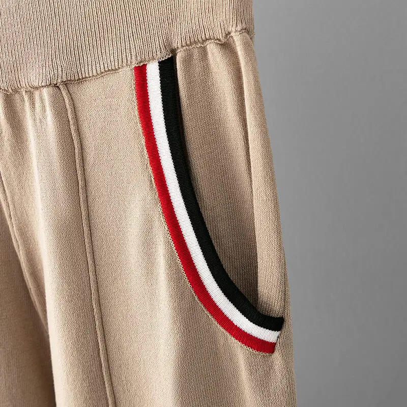 Wholesale 2023 Summer Knitted Fashion Casual Loose Sports New Ice Silk Round Neck Solid Women's Set