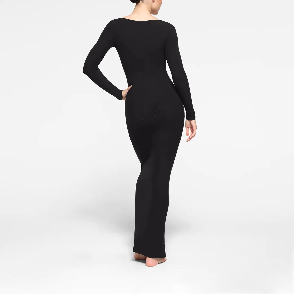 Wholesale 2024 Womens sexy night dress maxi a-line elegant bodycon dress autumn and winter long black maxi dress