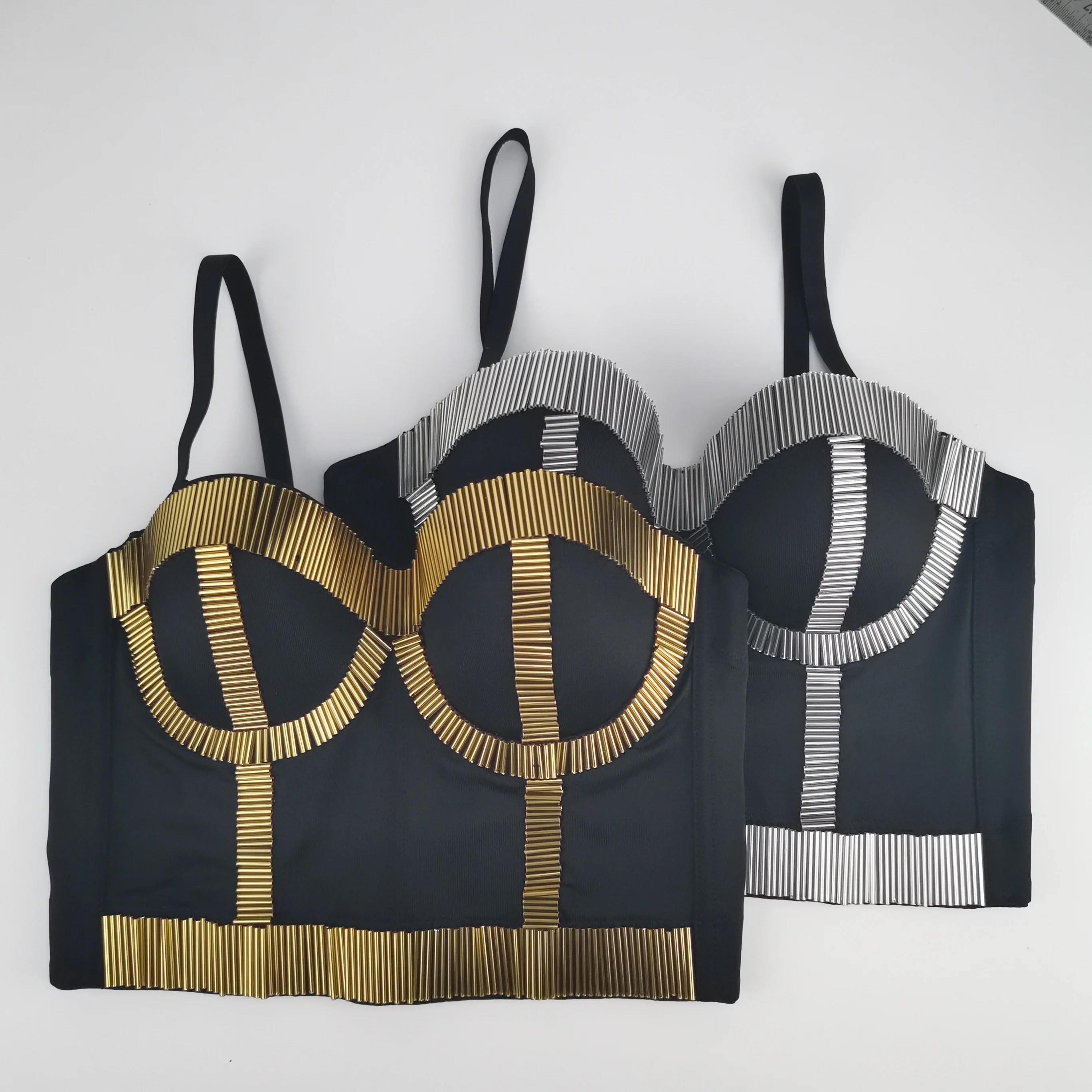 Wholesale 90% polyester 10% spandex gold sleeveless tank crop top for women