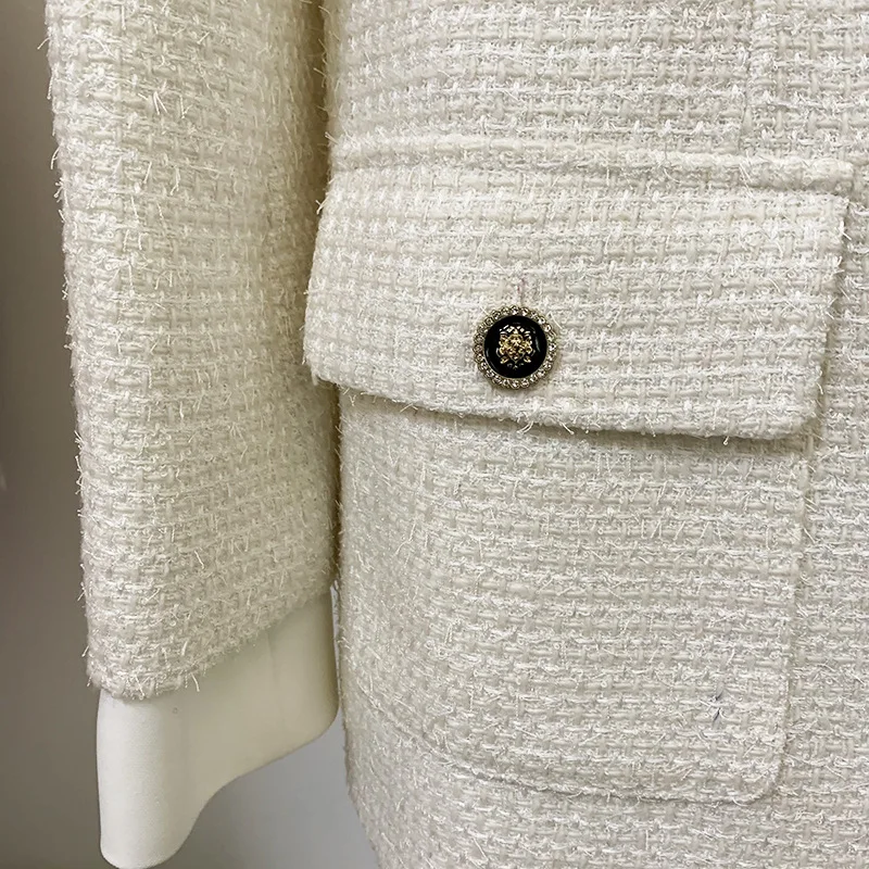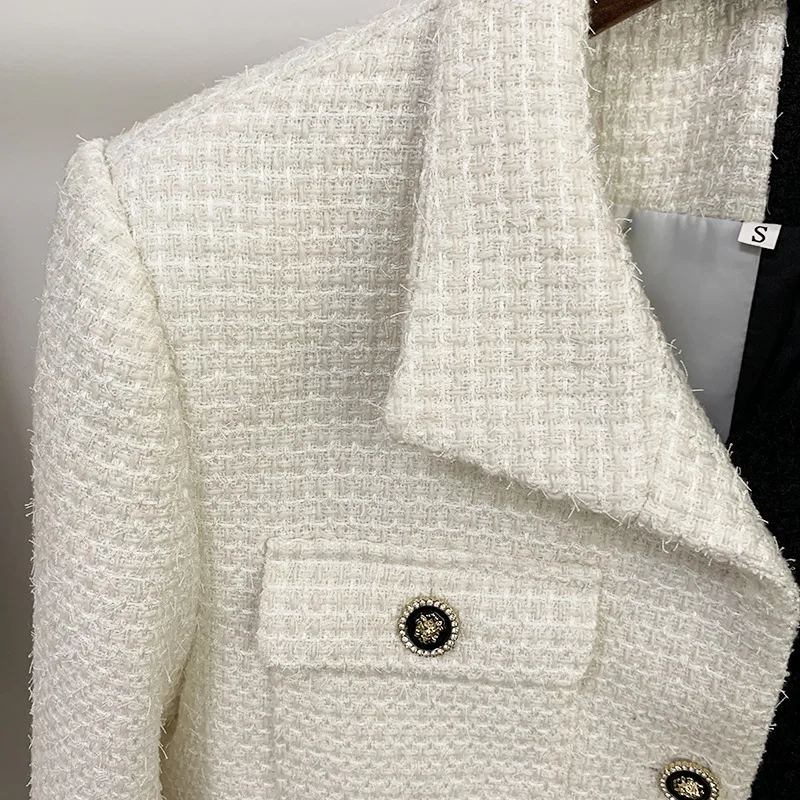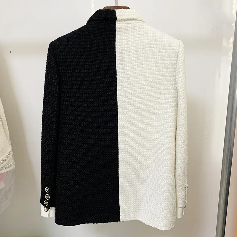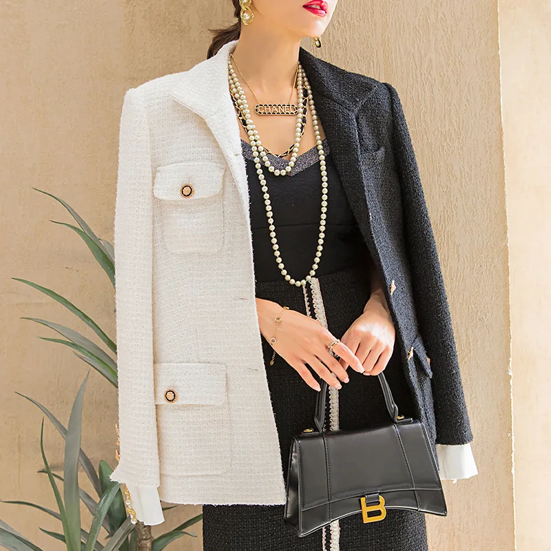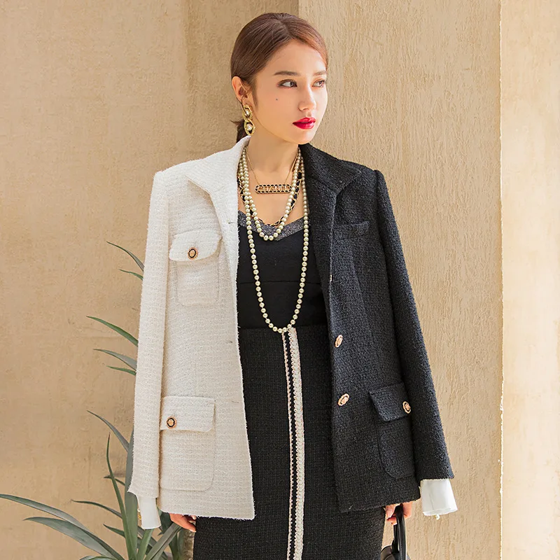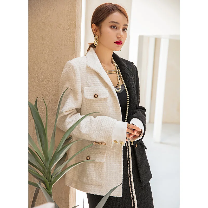 Wholesale and custom black and white contrast color tweed woolen Jackets elegant stylish casual blazer