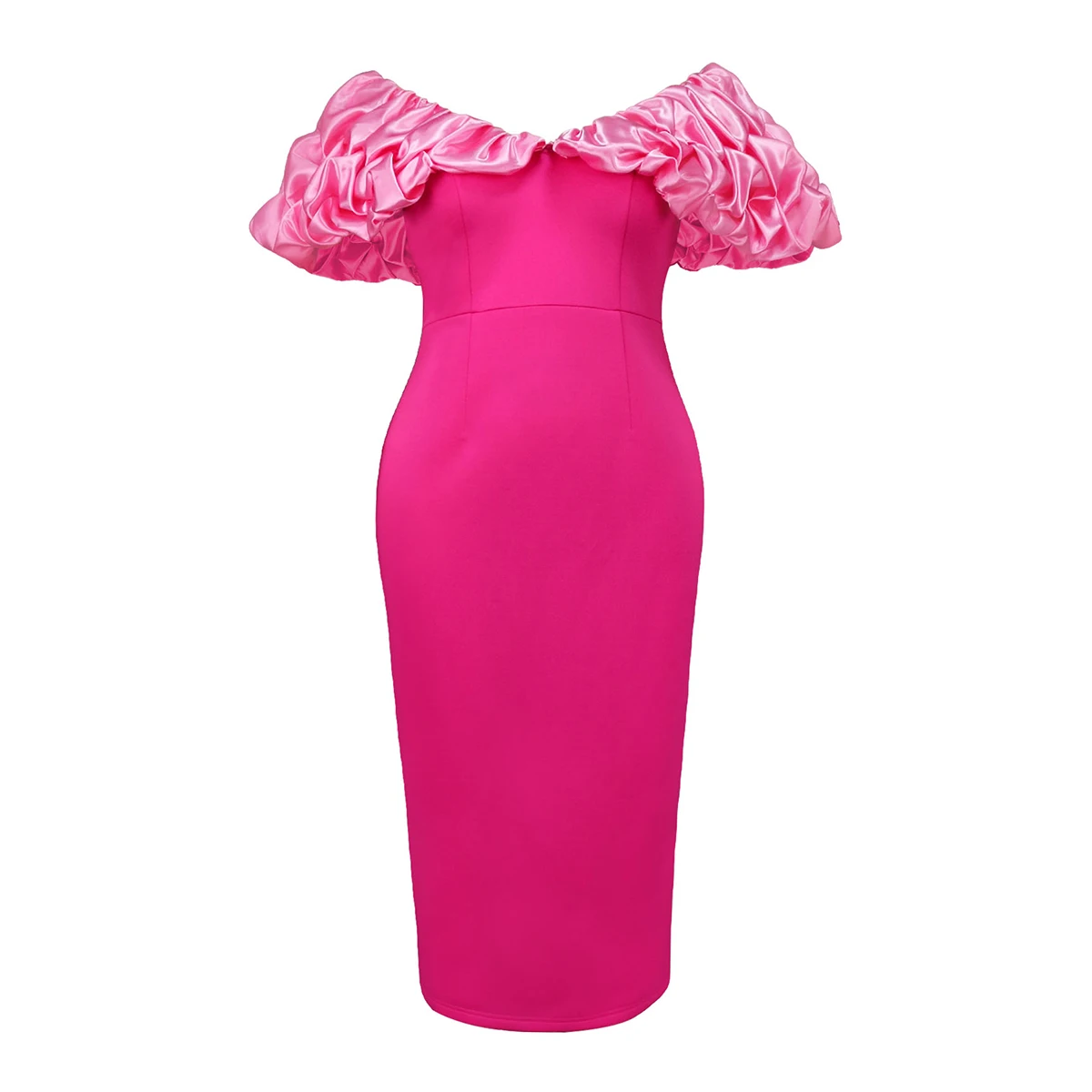 Wholesale AOMEI Backless Ruffles V Neck Lady Evening Off Shoulder Dress