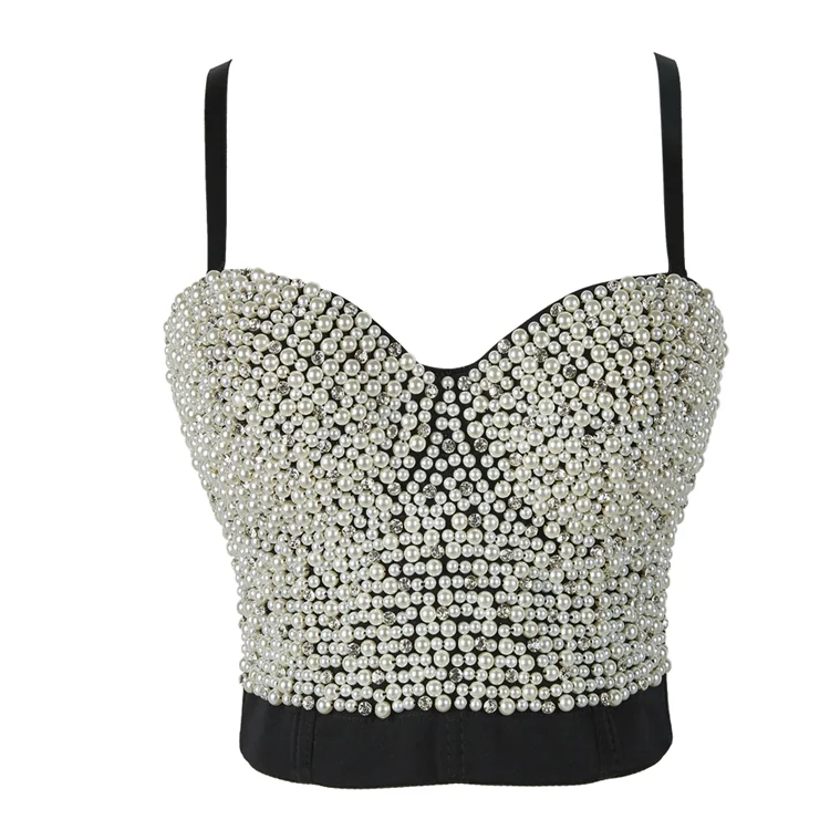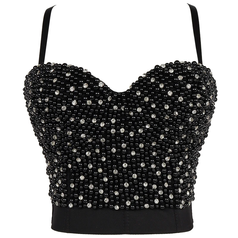 Wholesale black embellished beaded sexy latex bustier corset crop top