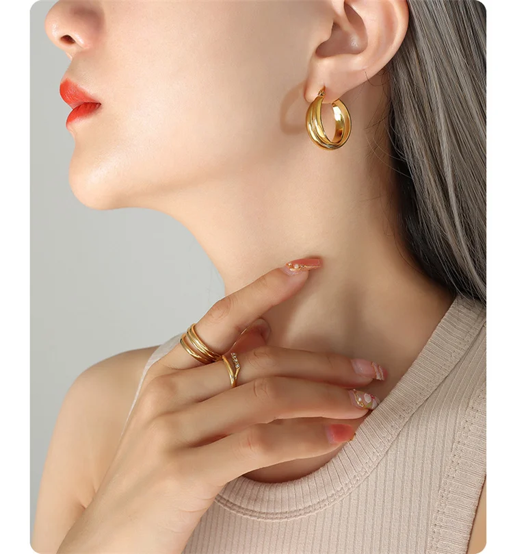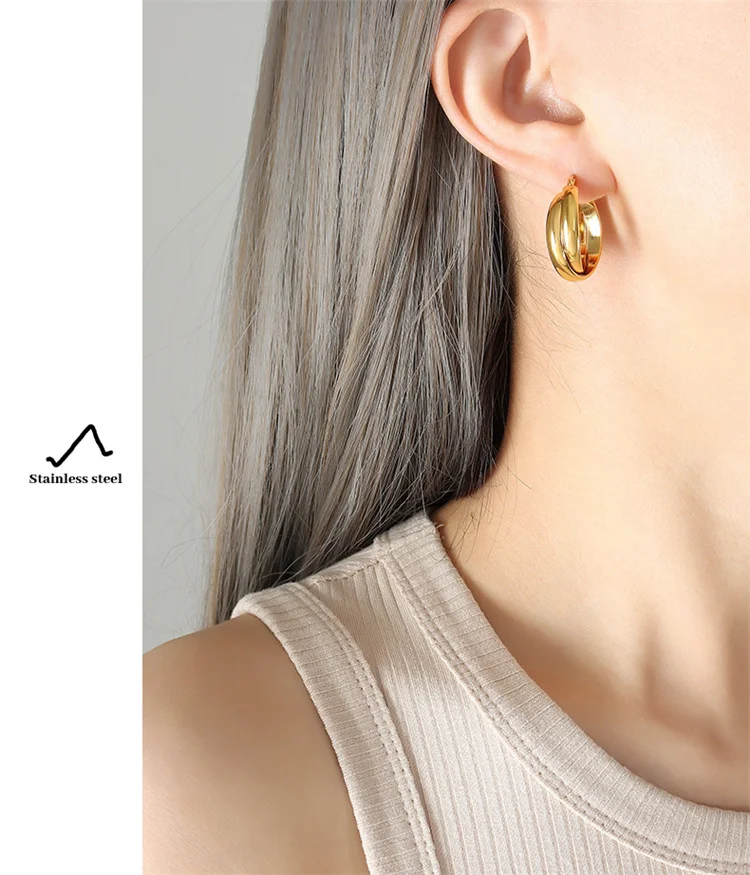 Wholesale China Custom High Quality Hypoallergenic Jewelry Stainless Steel 18K Gold Plated U Type Earrings For Sale