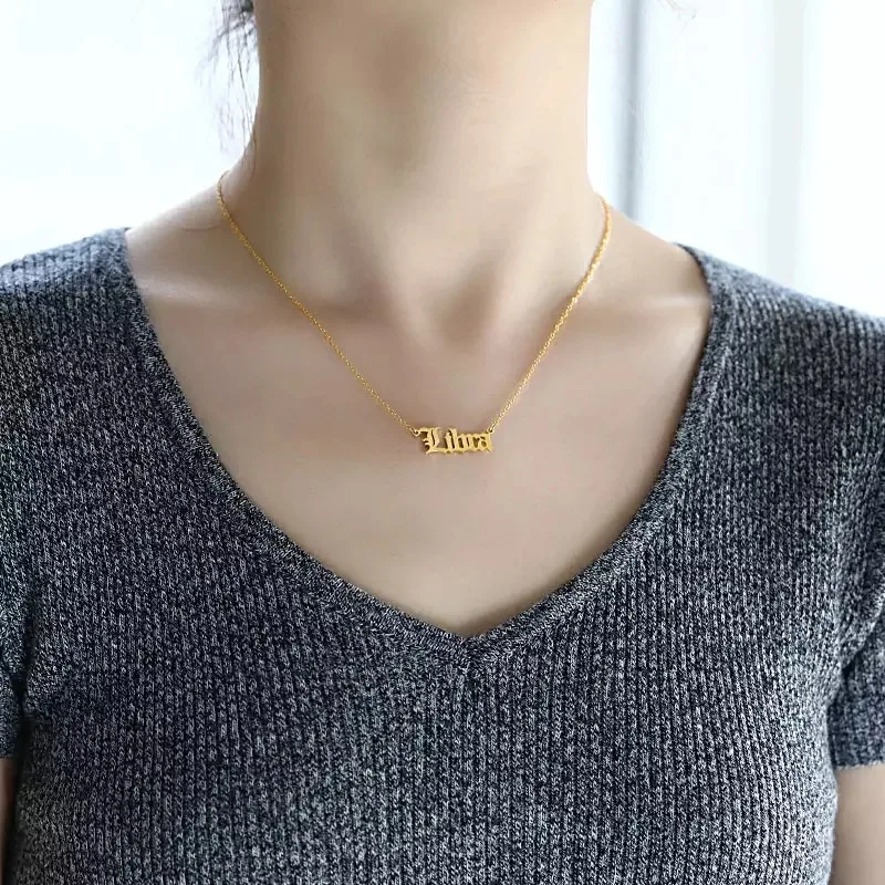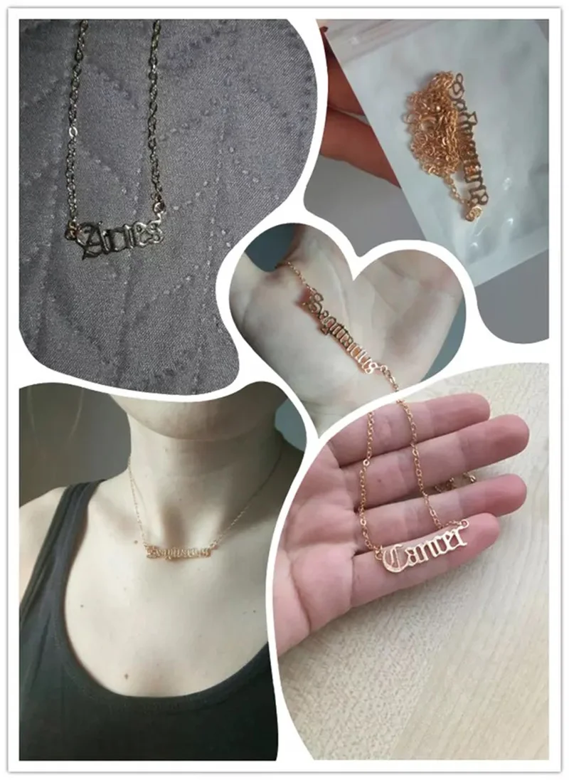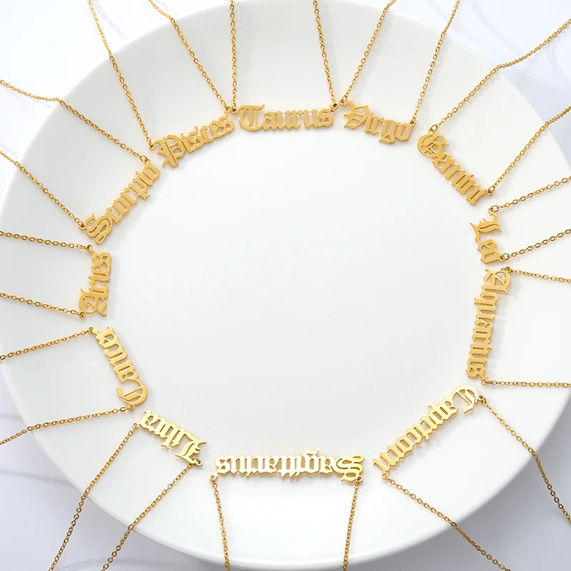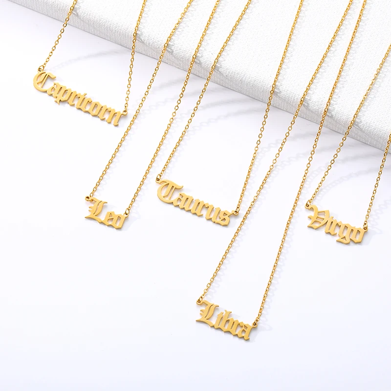 Wholesale Custom 12 Astrology Horoscope Star Jewelry 18K Gold Plated Stainless Steel Zodiac Sign Pendant Necklaces
