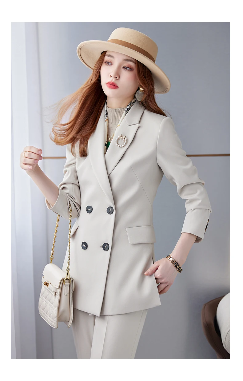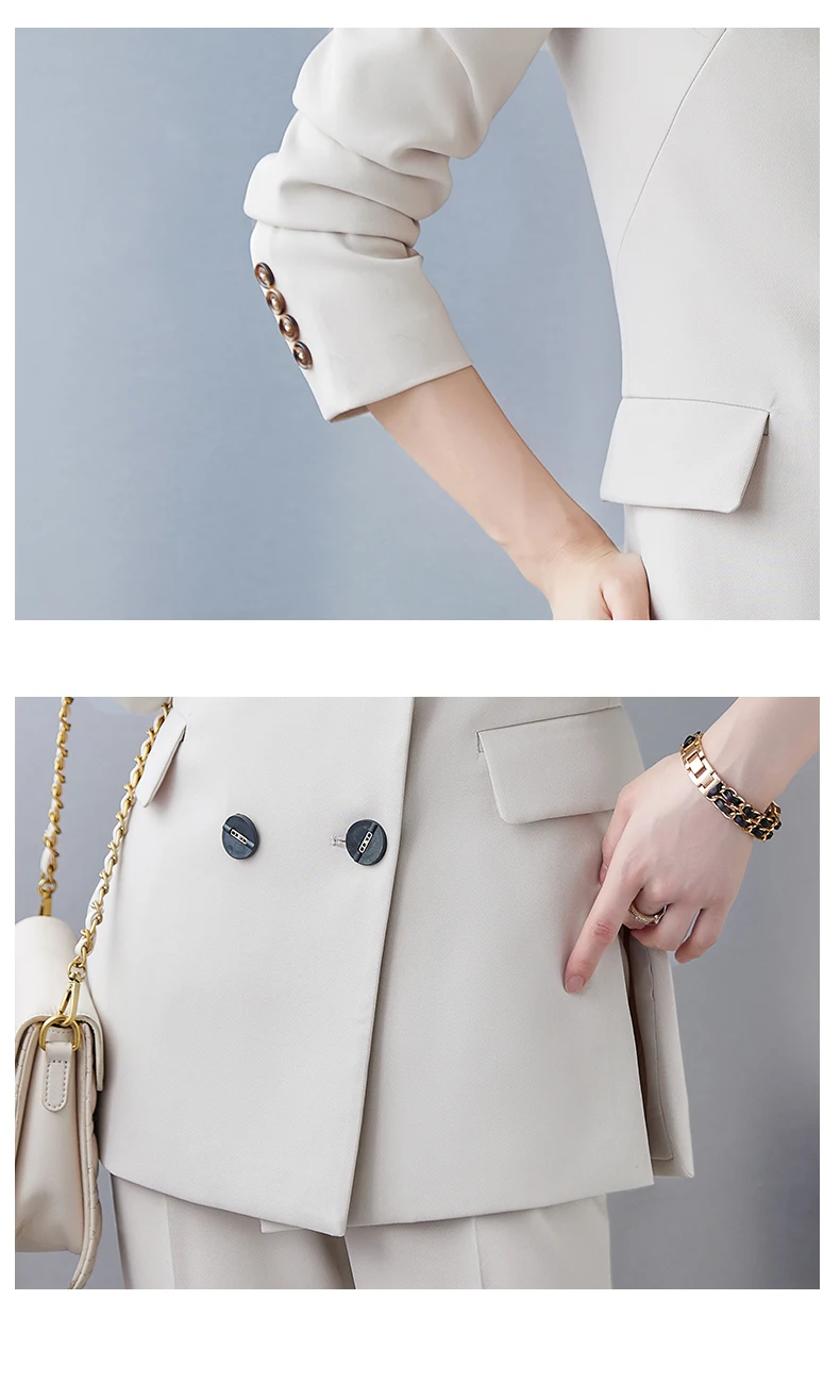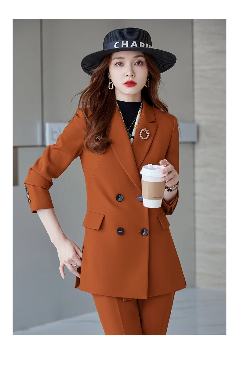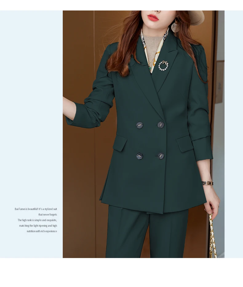 Wholesale Dropship Green Double Breasted 2 Piece Suit Set for Women Ankle-length Solid Pant Suit Work Wear Office Lady Style