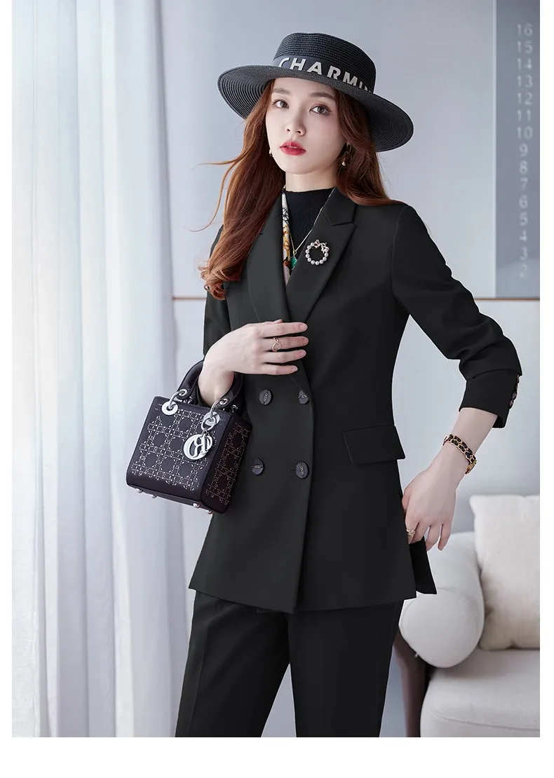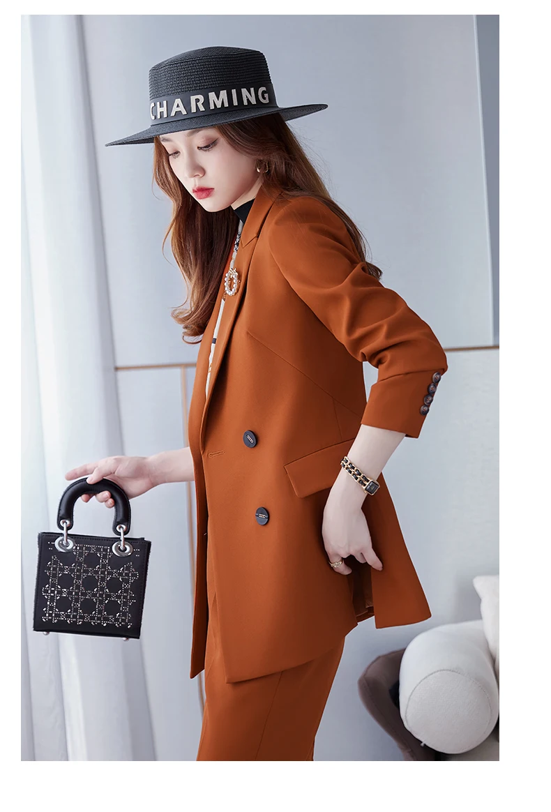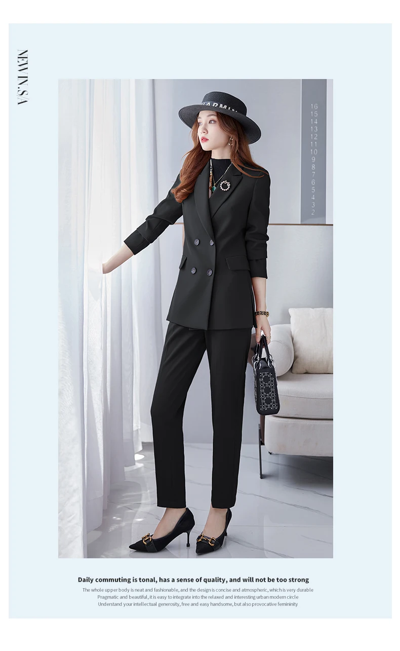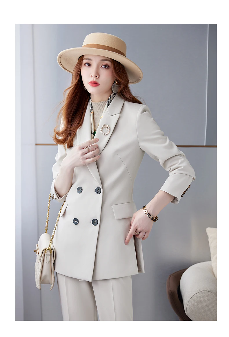 Wholesale Dropship Green Double Breasted 2 Piece Suit Set for Women Ankle-length Solid Pant Suit Work Wear Office Lady Style