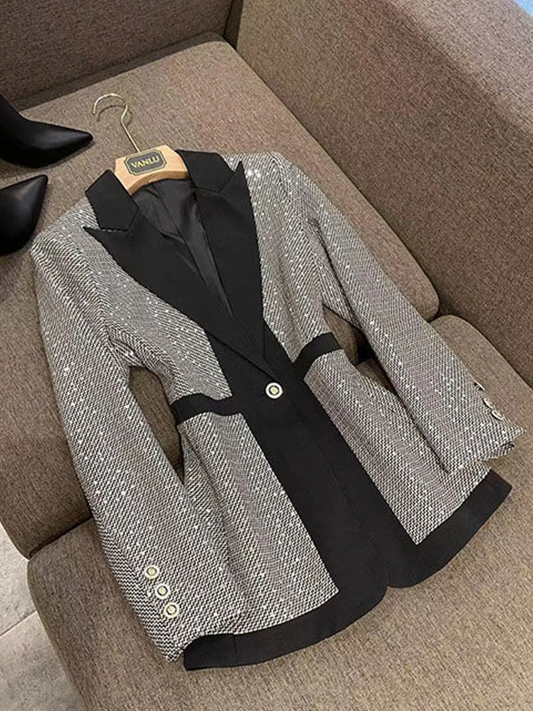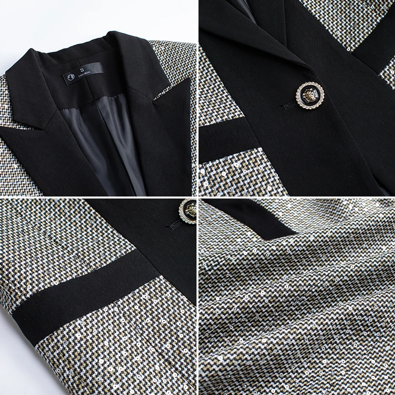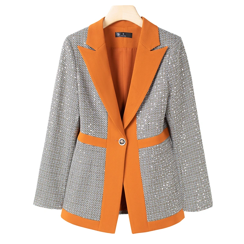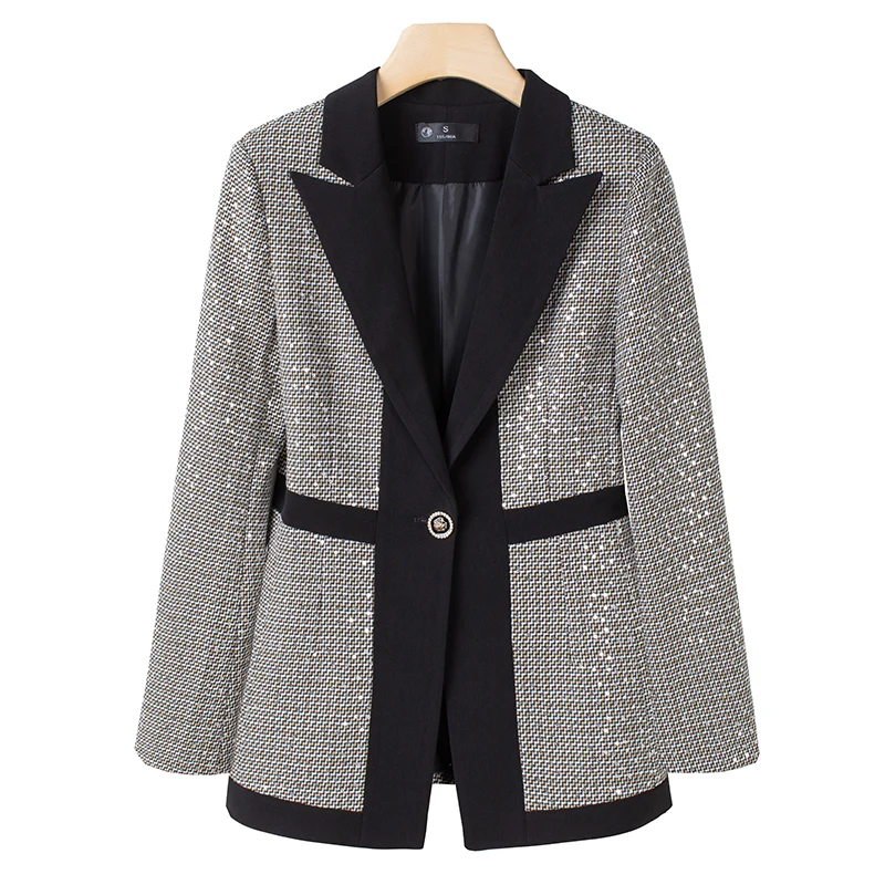 Wholesale Dropship OEM High-quality female Patchwork blazers Casual Women's Coats Fashion Outwear Jacket Office Lady