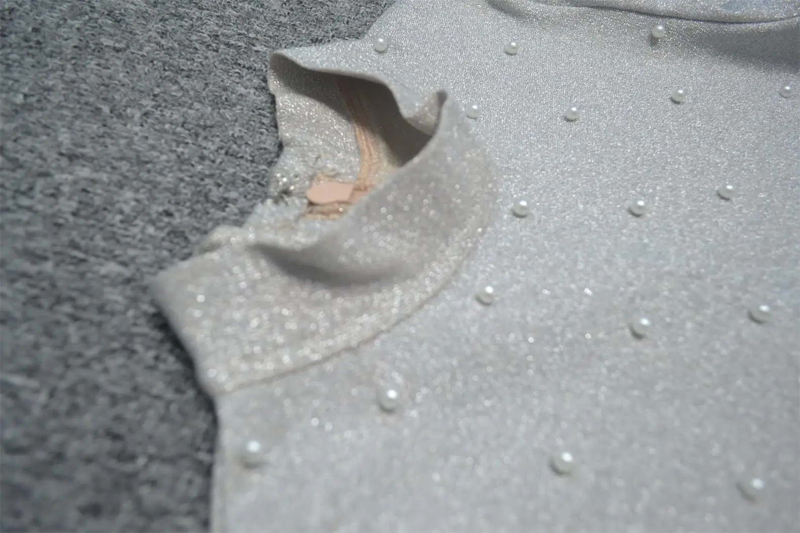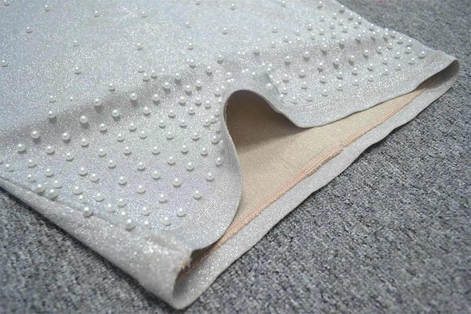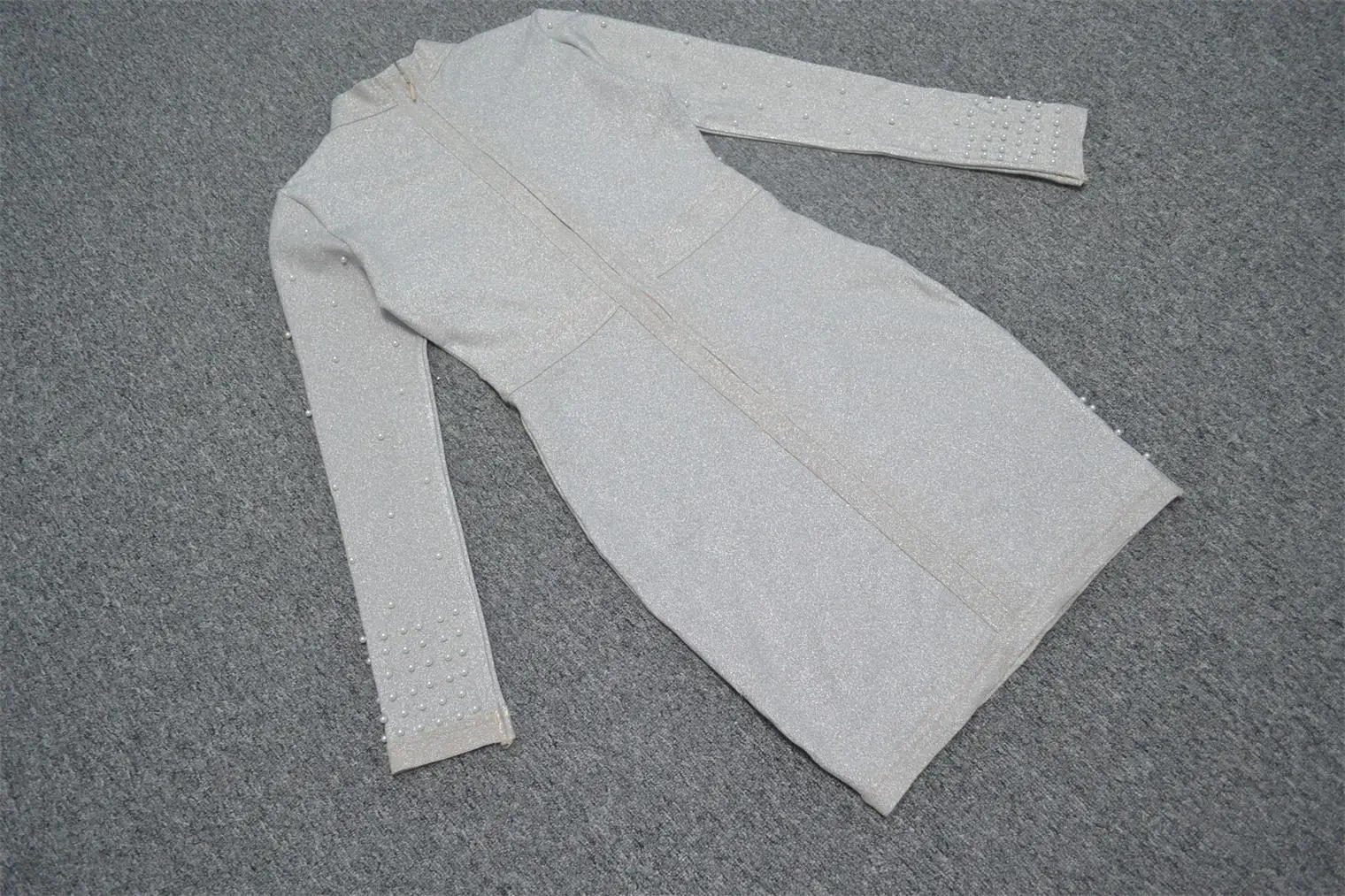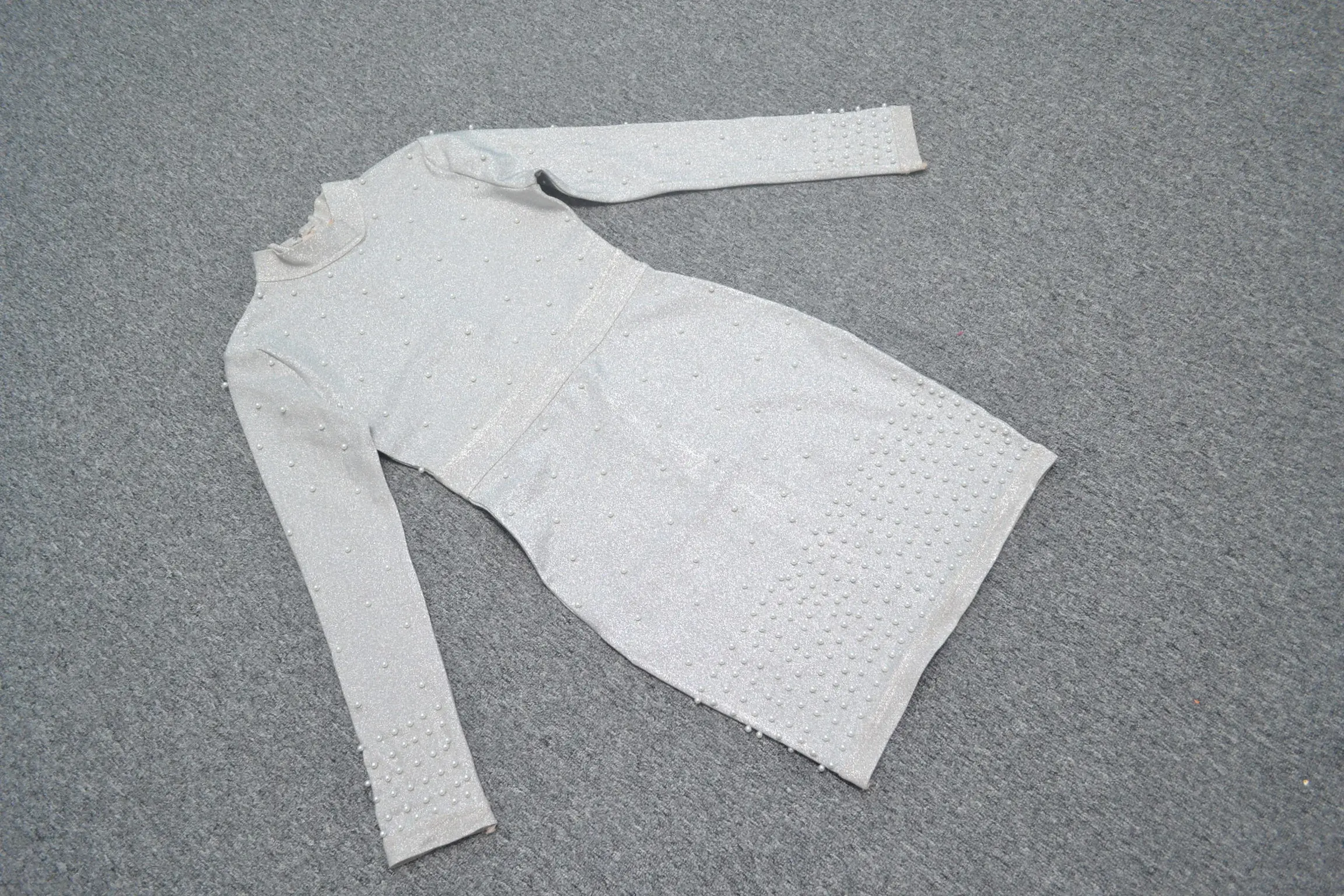 Wholesale Elegant Pearl long sleeve cocktail dress for ladies mini bodycon dress white