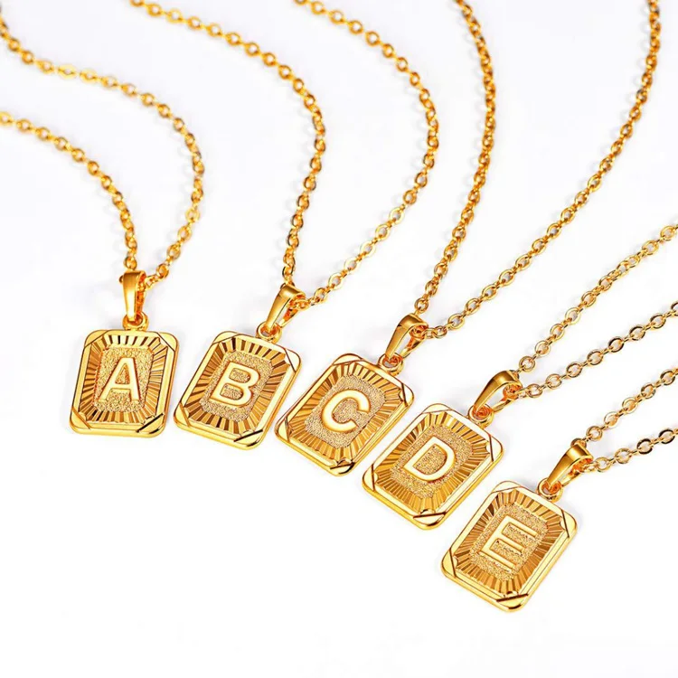 Wholesale english letters charm 18k gold plated stainless steel initial letter alphabet pendant necklace women jewelry