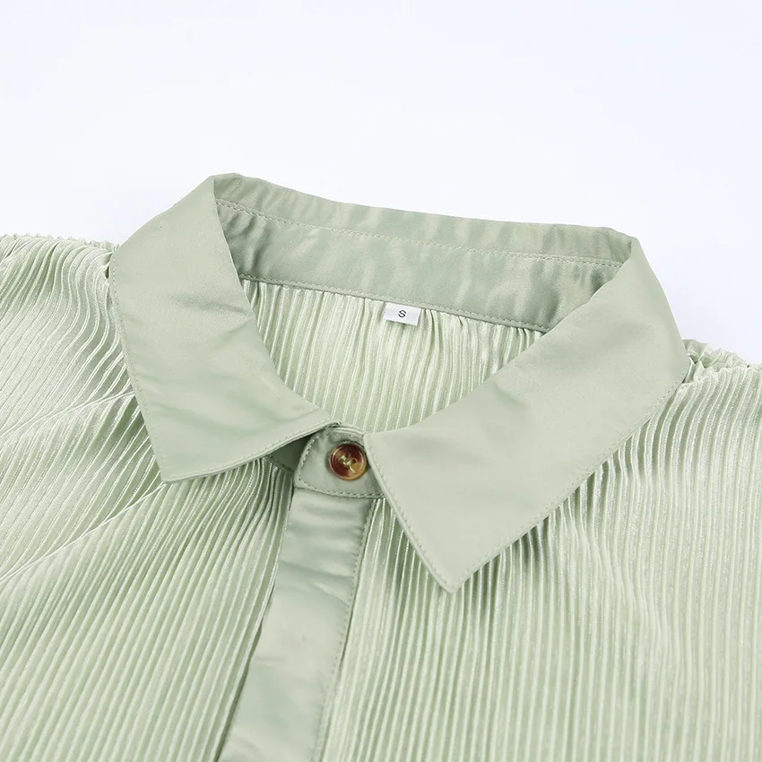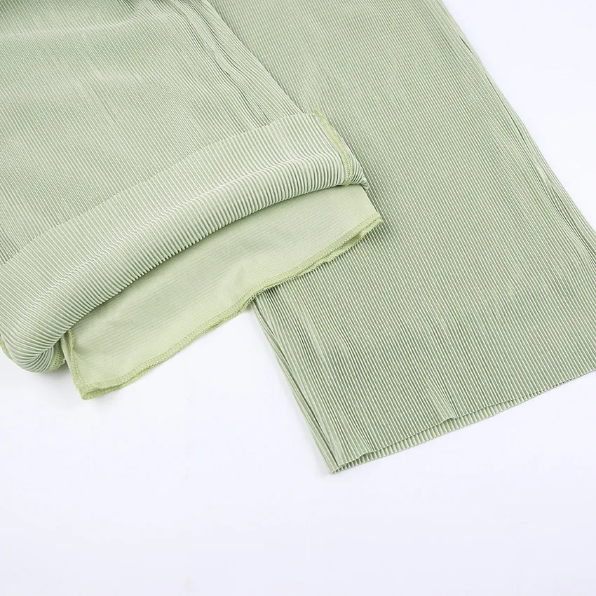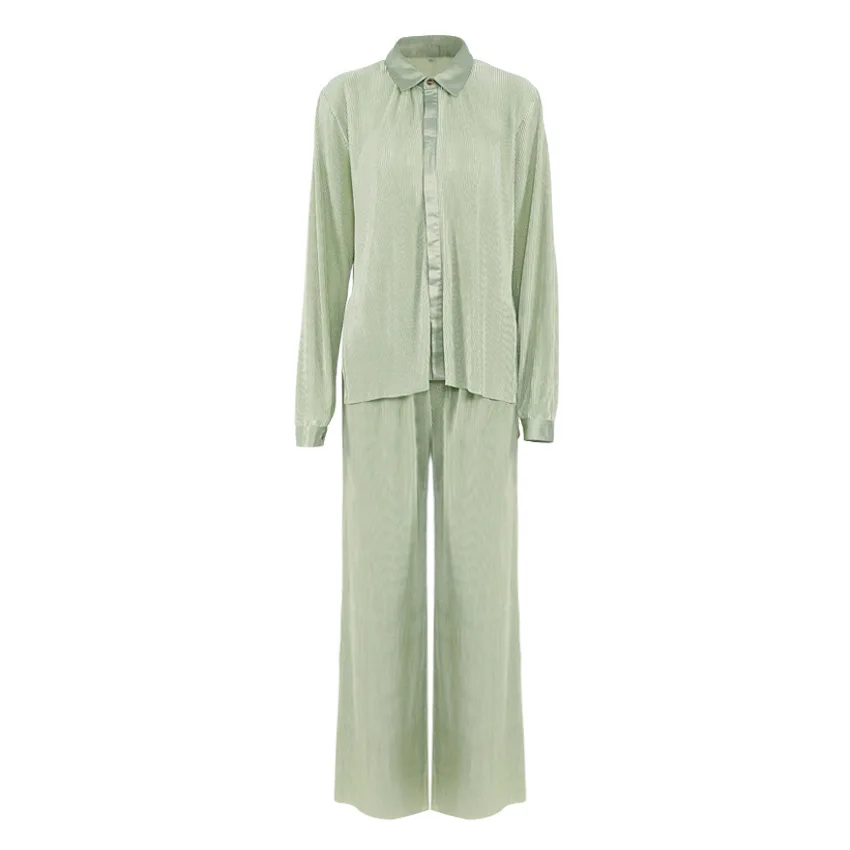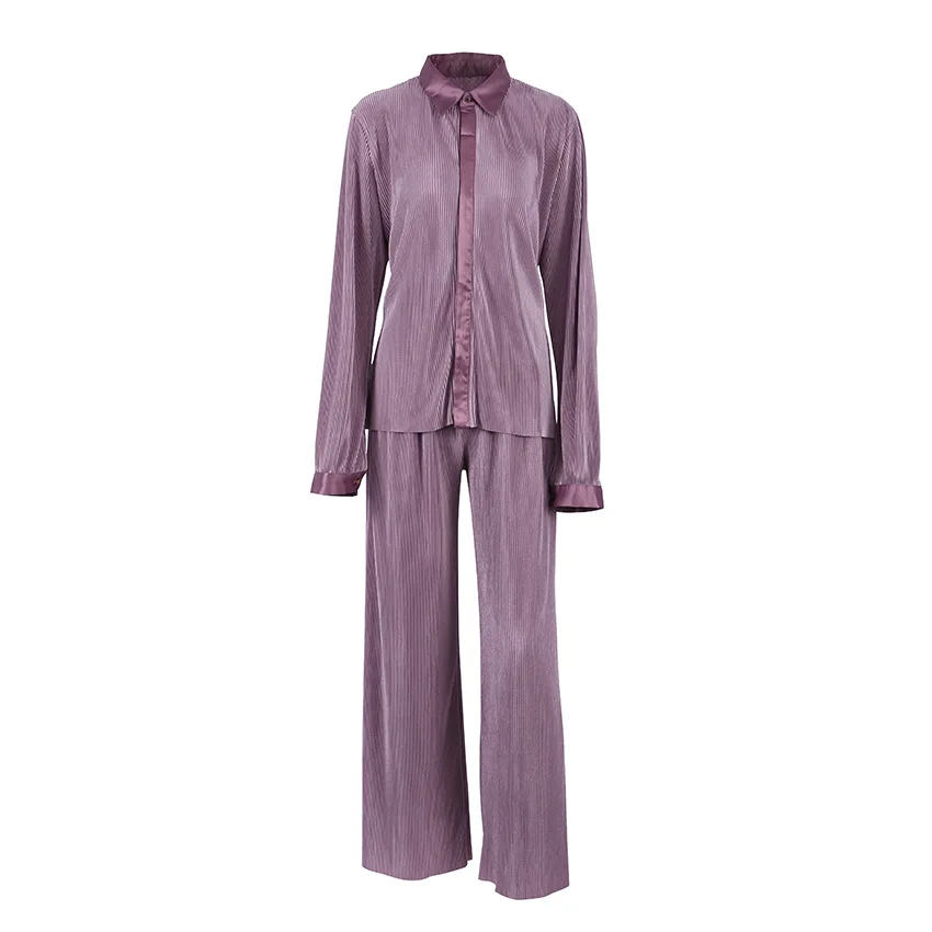 Wholesale Fashion Crinkle Fabric Casual Blouse Matching Set Women 2 Piece Outfits Set Two Piece Pants Set