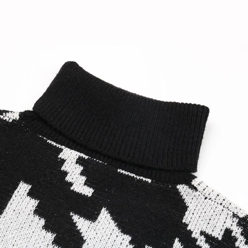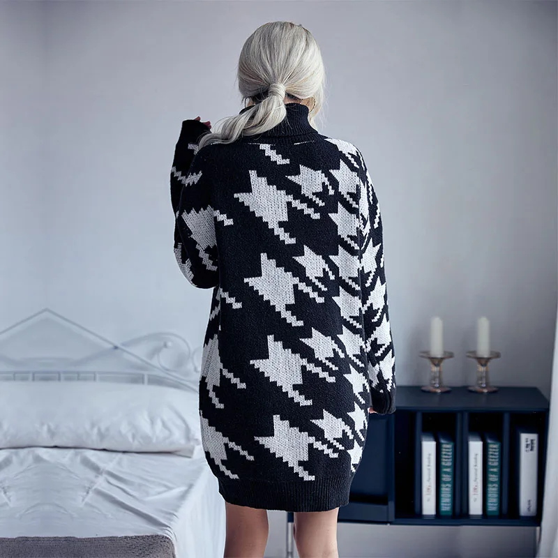 Wholesale Fashion Long Sleeve Turtleneck Pullover Knitted Argyle Bodycon High Turtle Neck Sweater Dress