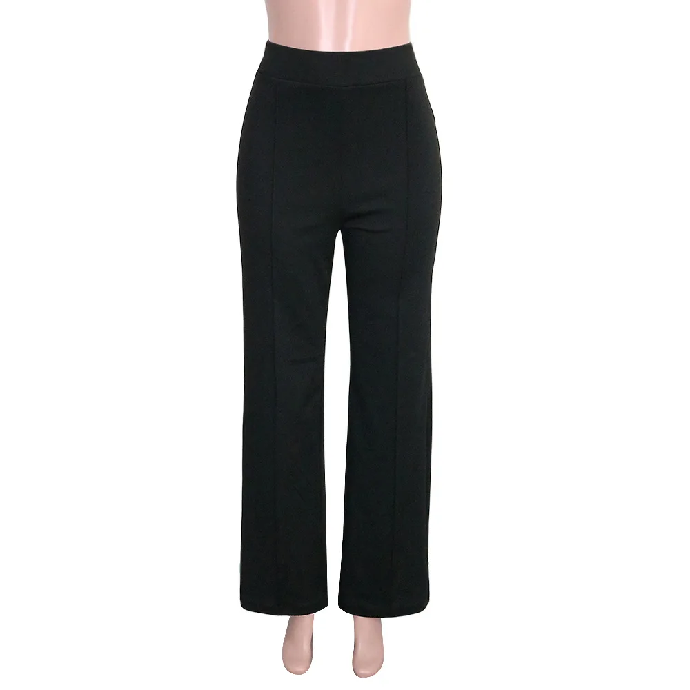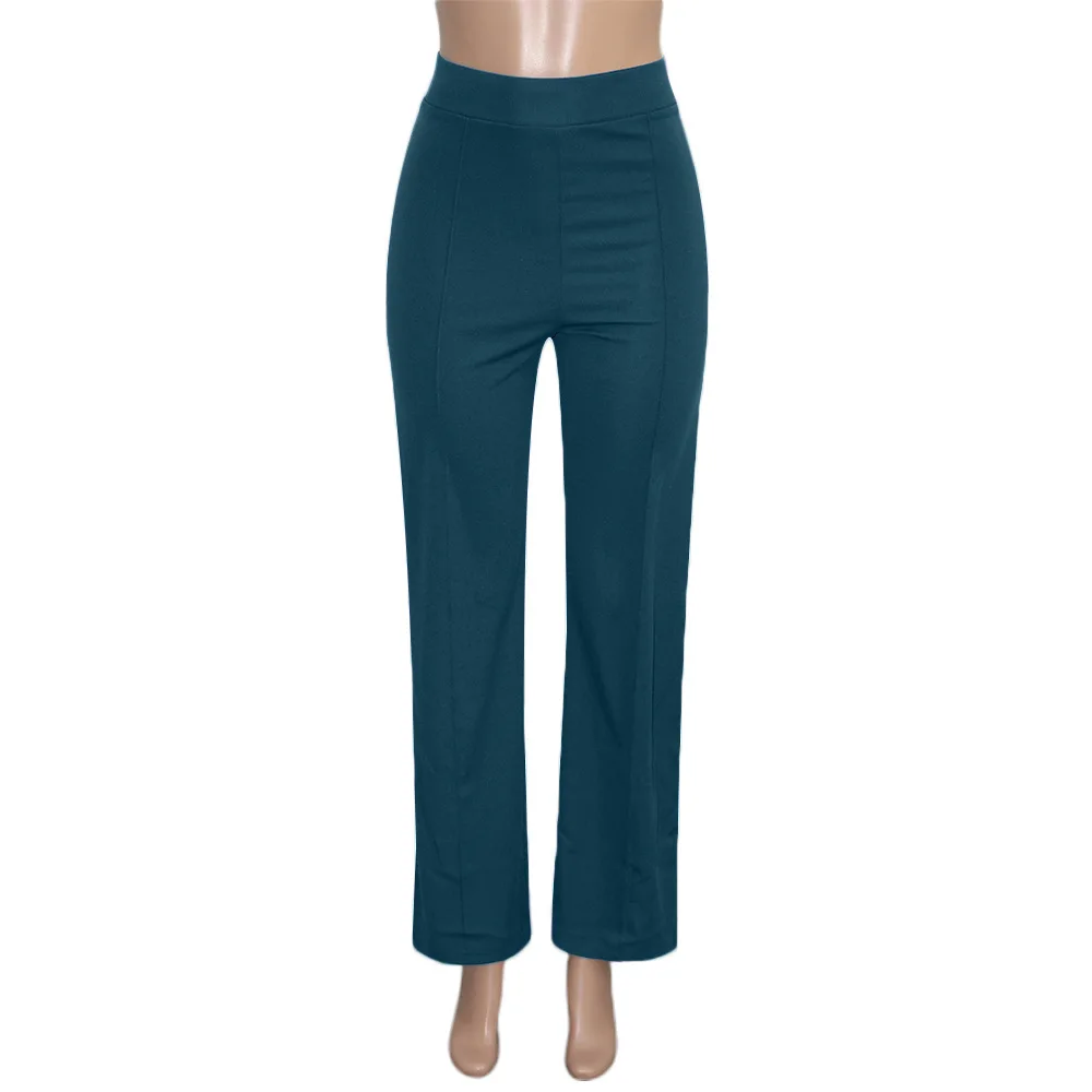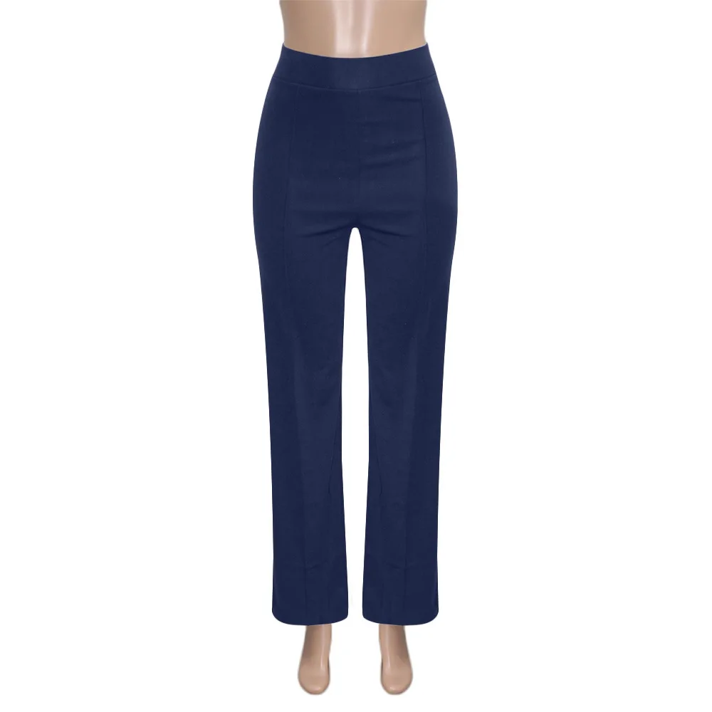 Wholesale Fashion Solid Color Ladies Casual Office Pants Elastic High Waist Trouser Plain Women Trousers
