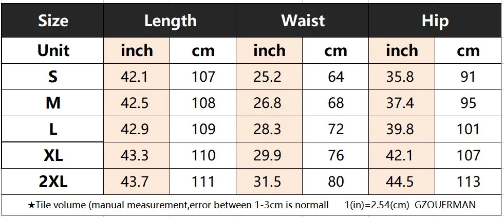 1.Please allow 1-3cm deviation due to manual measurement. 2.Measure the clothes you usually wear but not measure your body to choose size. 3.Choose the right size according to your own measurements combined with our size chart. Attention:Due to the effect of different monitors and cameras, the goods may look a little bit different from pictures shown online. GZOUERMAN |