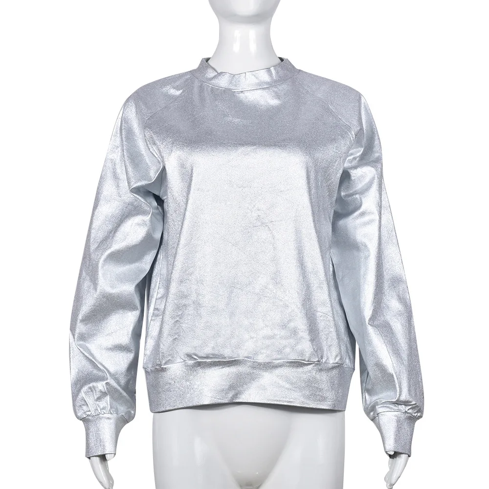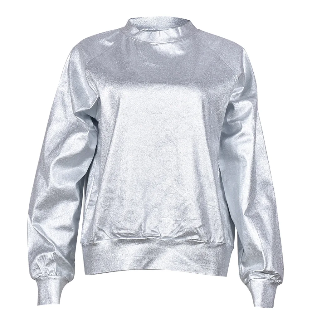 Wholesale fashion street PU leather pullover hoodies casual long sleeve loose hoodie for women