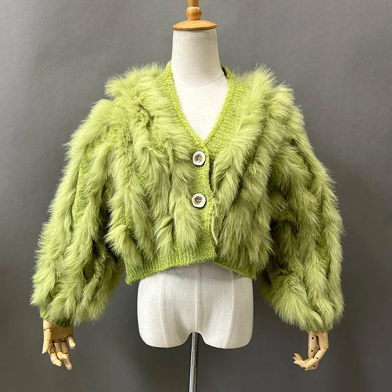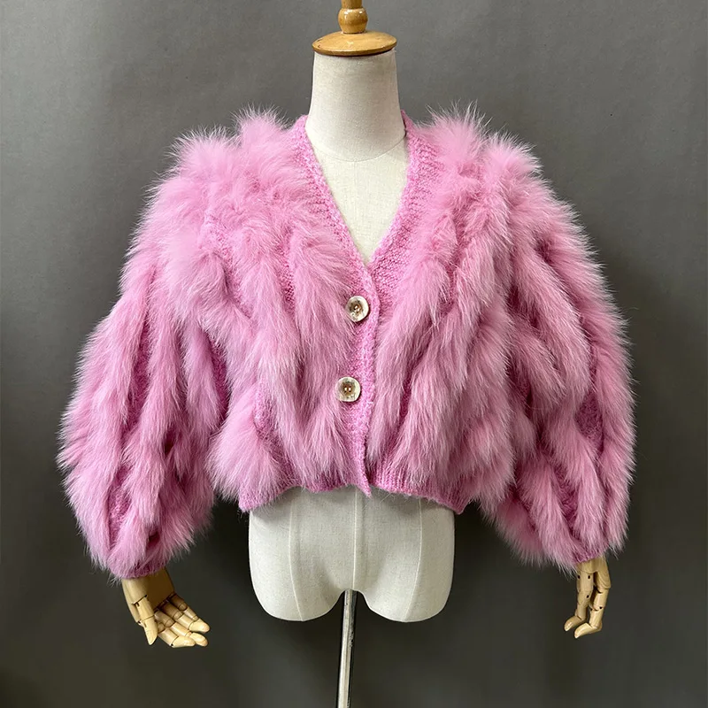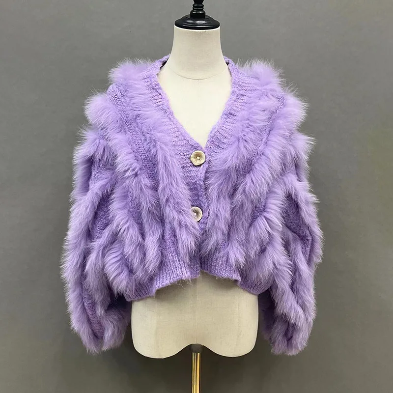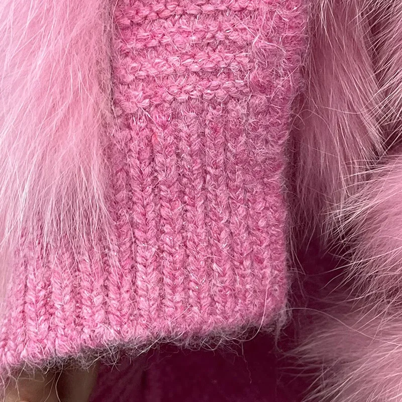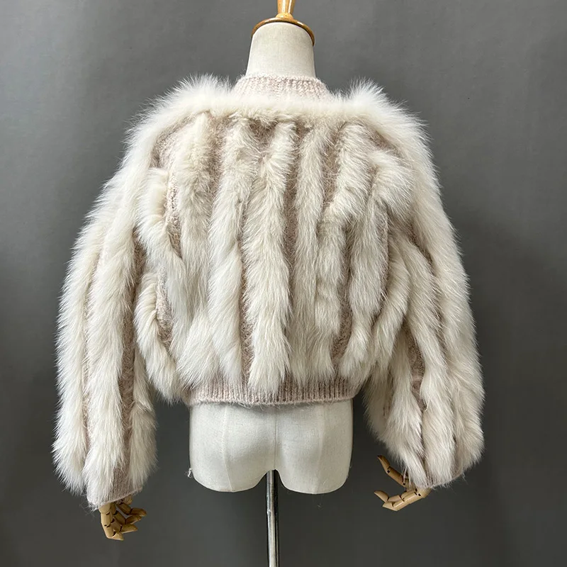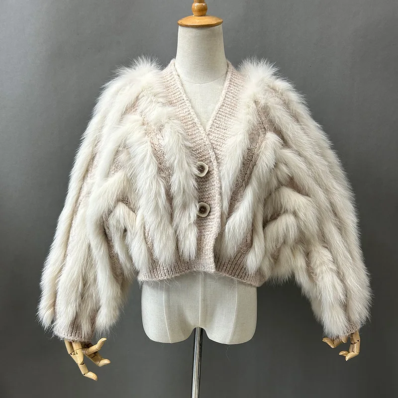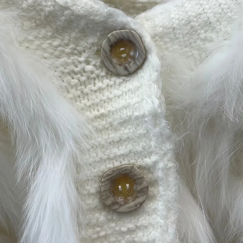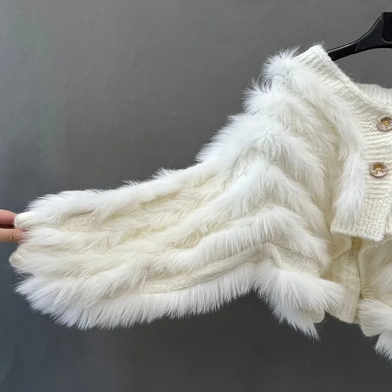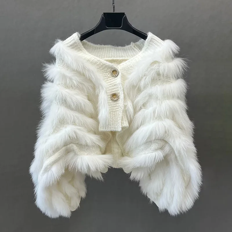 Wholesale Hand Sewing Soft Cropped Knitwear Women Pretty Cardigan with Fox Fur