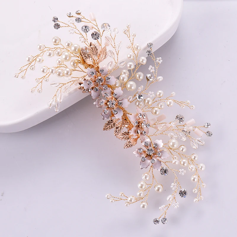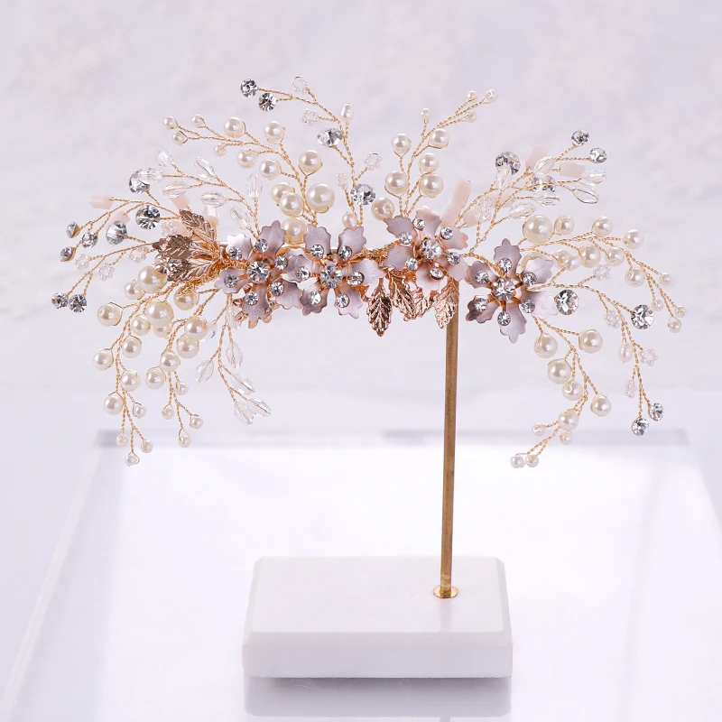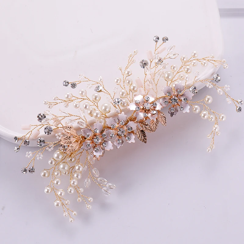 Gold leaf pearl bridal headband women hair accessories girls wedding hair vine jewelry wedding headpiece