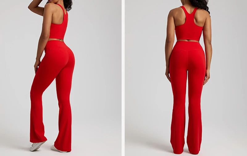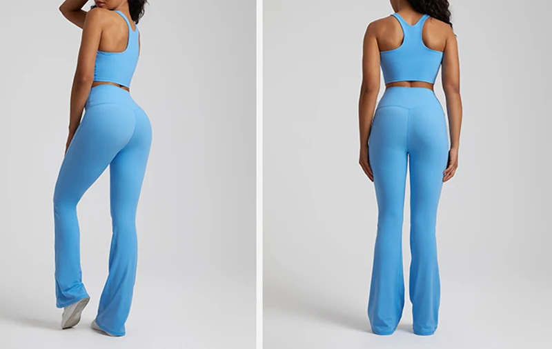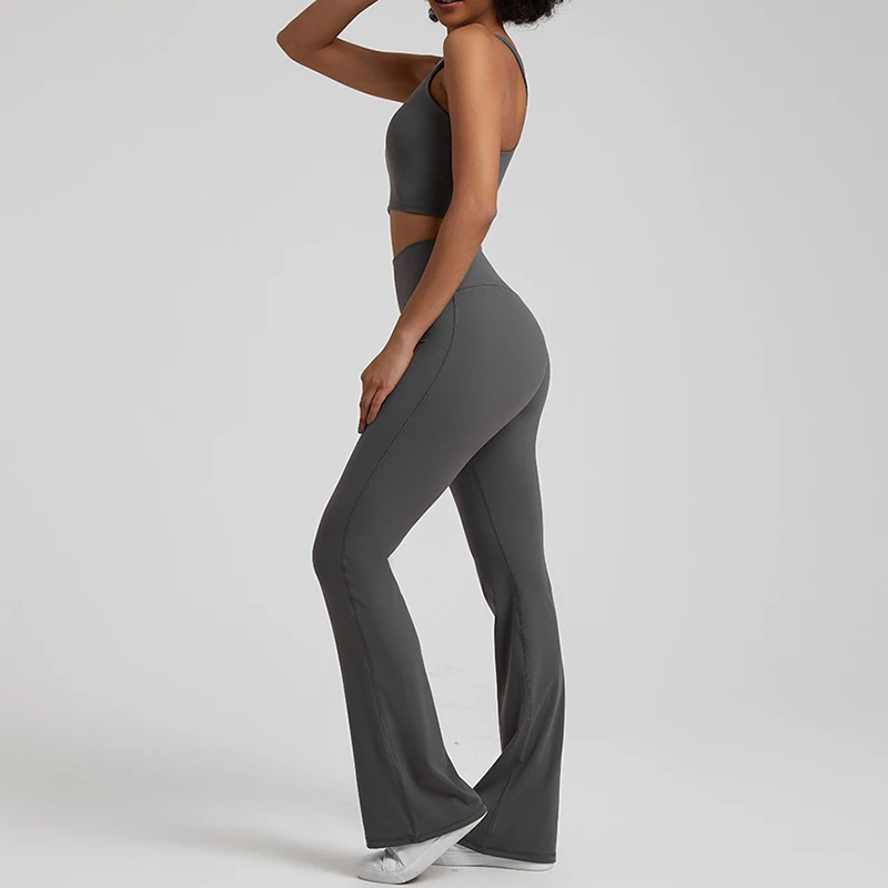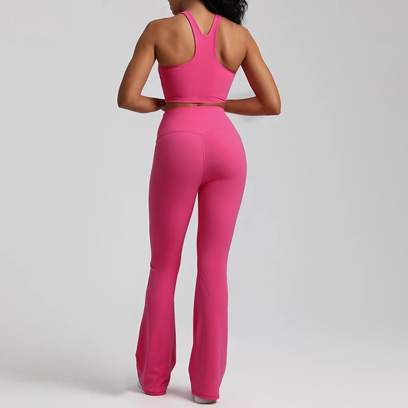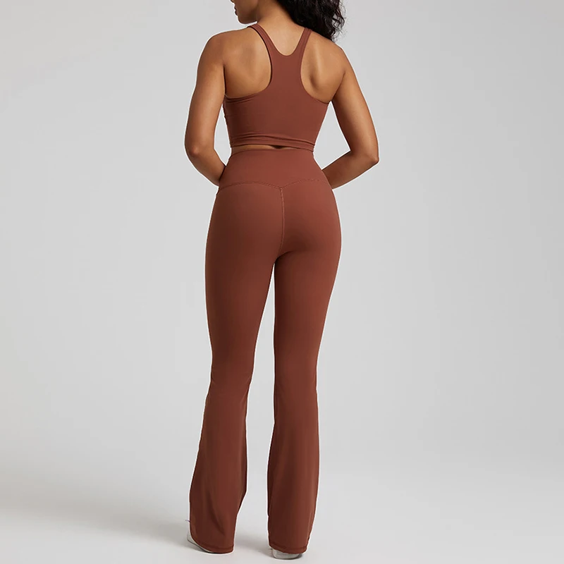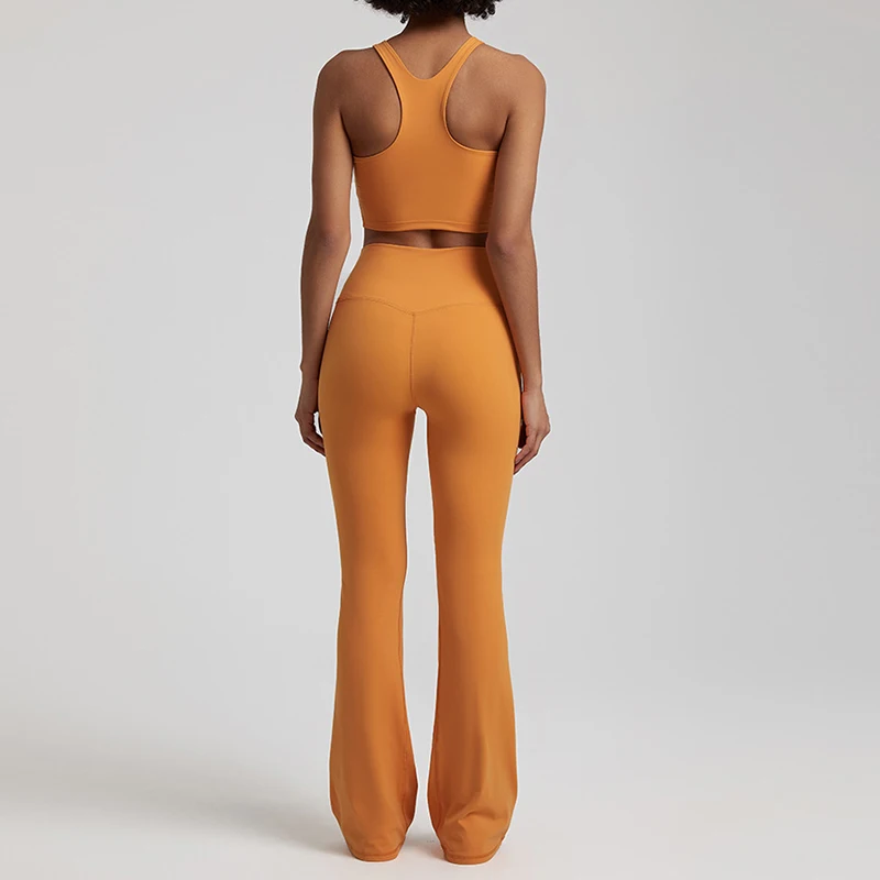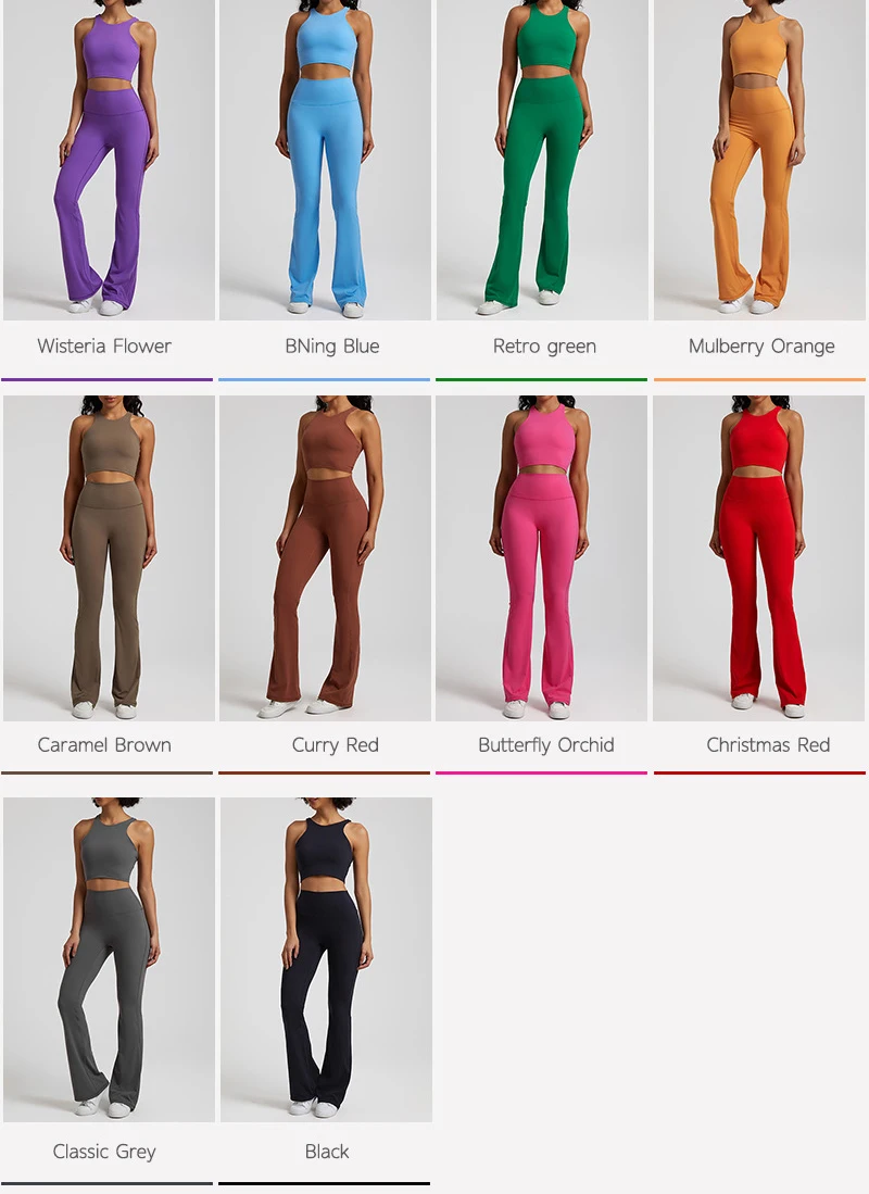 Wholesale High Neck Racer Back Sports Bra Wide Leg Flared Pants No Front Seam Line Legging Workout Fitness Gym Wear Yoga Set