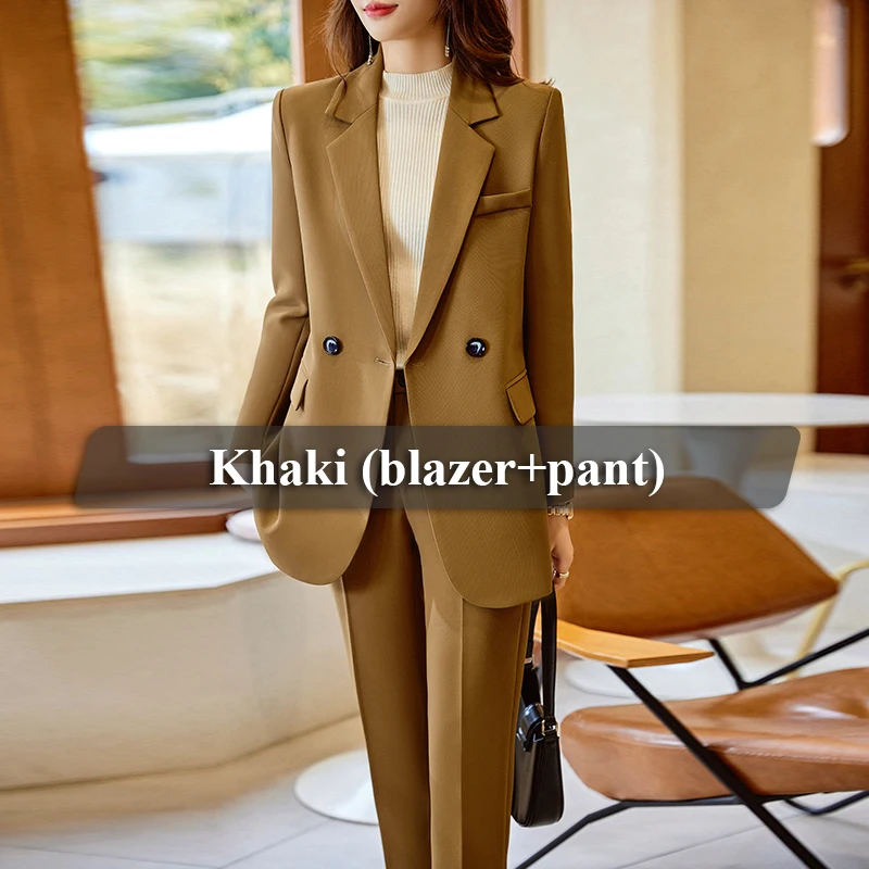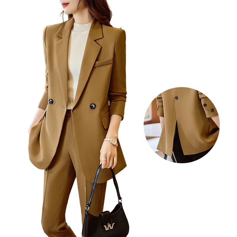 Wholesale High-Quality 2 Piece Dealers Set Office Ladies Pant Suit khaki Uniform Designs Formal Fashion Women Blazer Suits