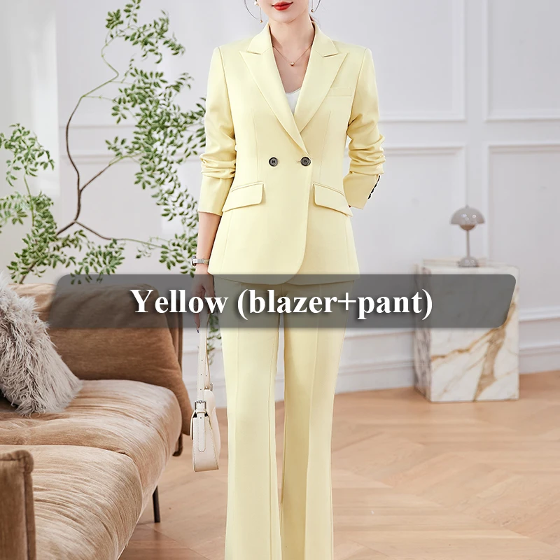Wholesale High-quality 2 Piece Set Formal Business Suit Blazer Office Lady Work Wear Yellow Outfits Women Jacket and Pant