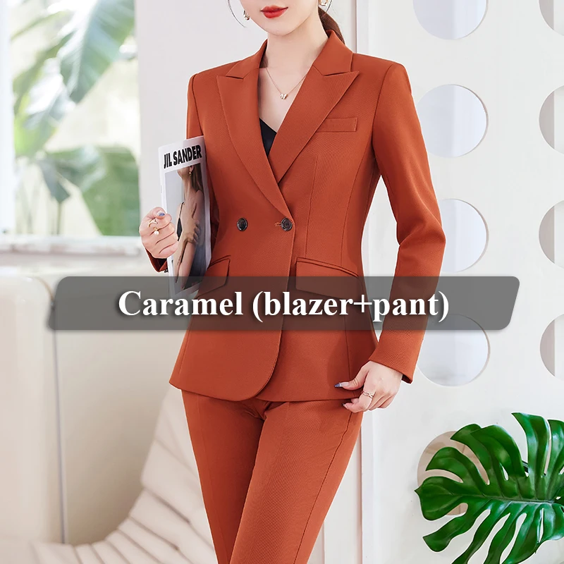 Wholesale High-quality 2 Piece Set Formal Business Suit Blazer Office Lady Fashion Yellow Outfits Women Jacket and Pant