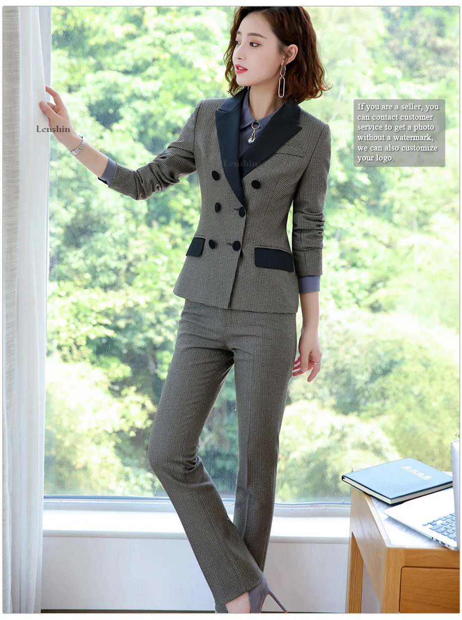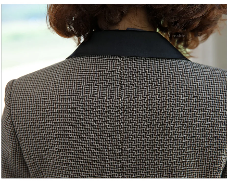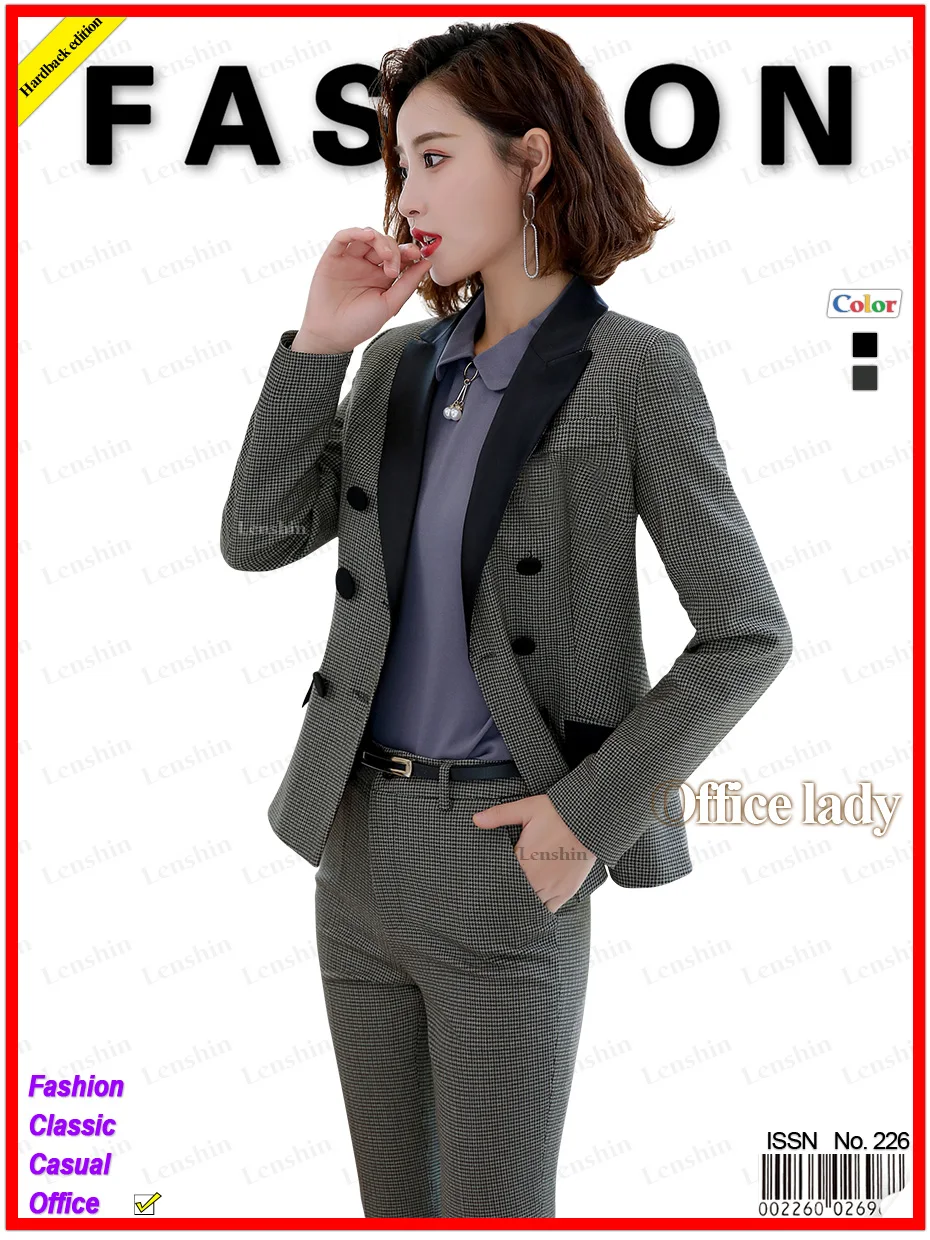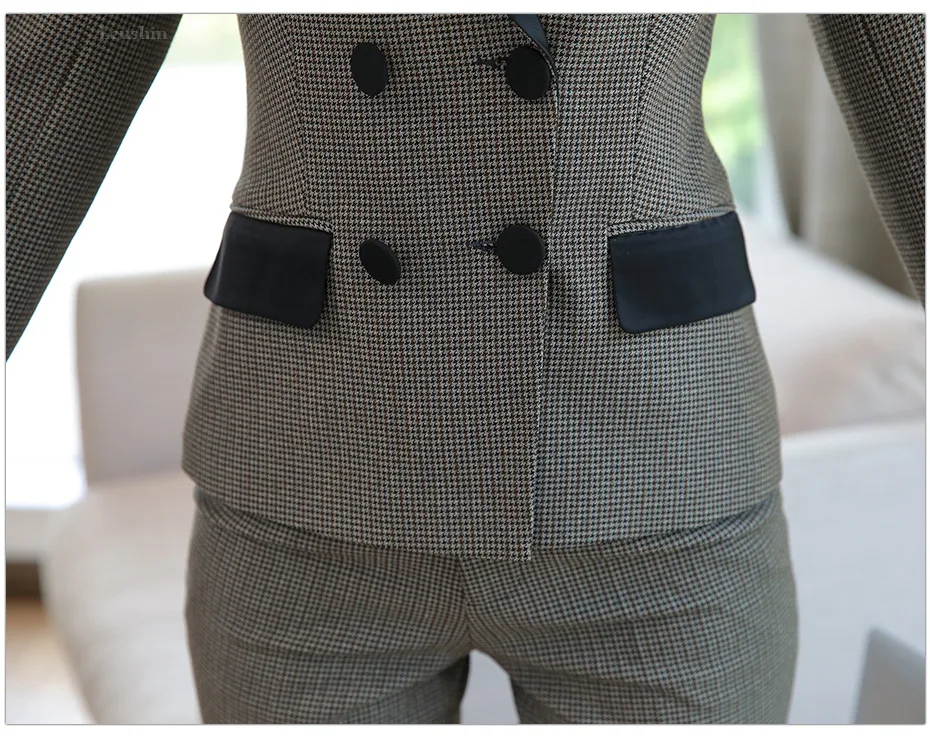 China Factory Direct Sell Wholesale Dropship High-quality 2 Piece Suit Set Houndstooth Pant Suit Blazer Office Lady Design Women Soft Jacket and Full-Length Trouser