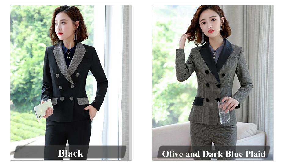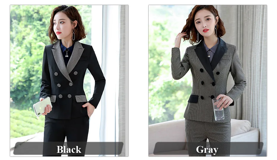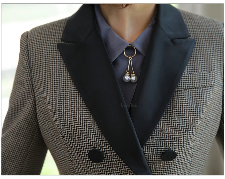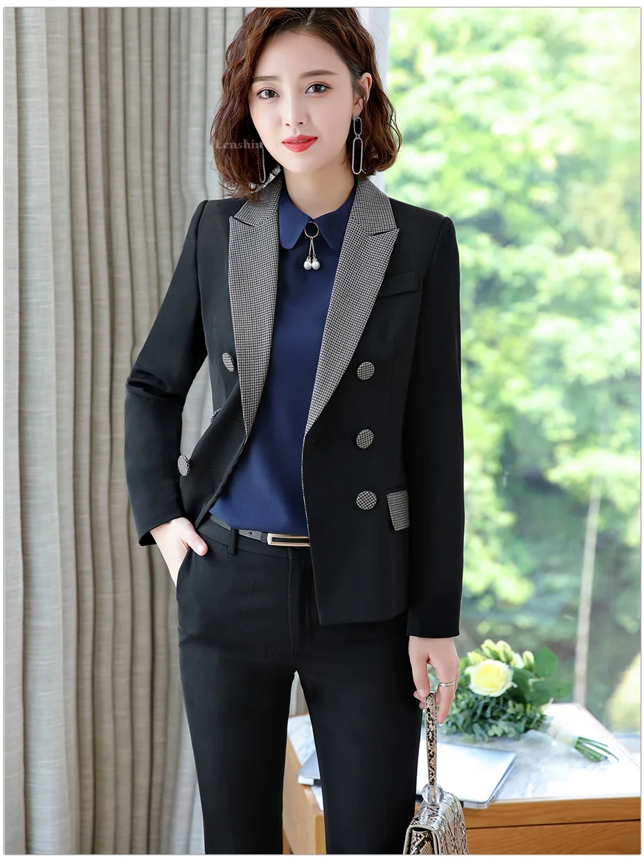 China Factory Direct Sell Wholesale Dropship High-quality 2 Piece Suit Set Houndstooth Pant Suit Blazer Office Lady Design Women Soft Jacket and Full-Length Trouser