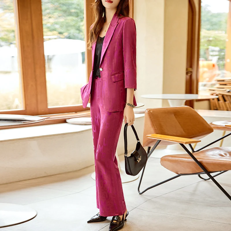 Wholesale Dropship China Factory Direct Sell 2 Piece Suit Set for Women Wine Pant Suits Business Office Lady Work Wear Formal Blazer with Trouser