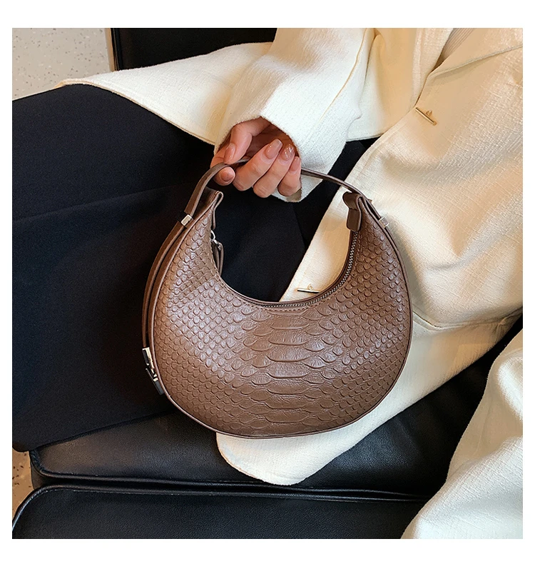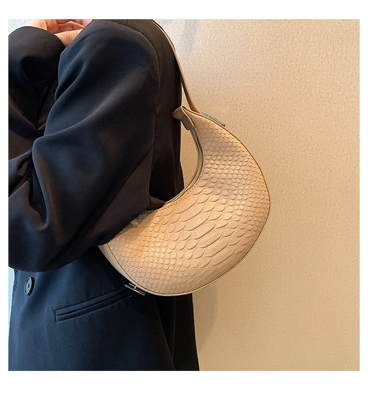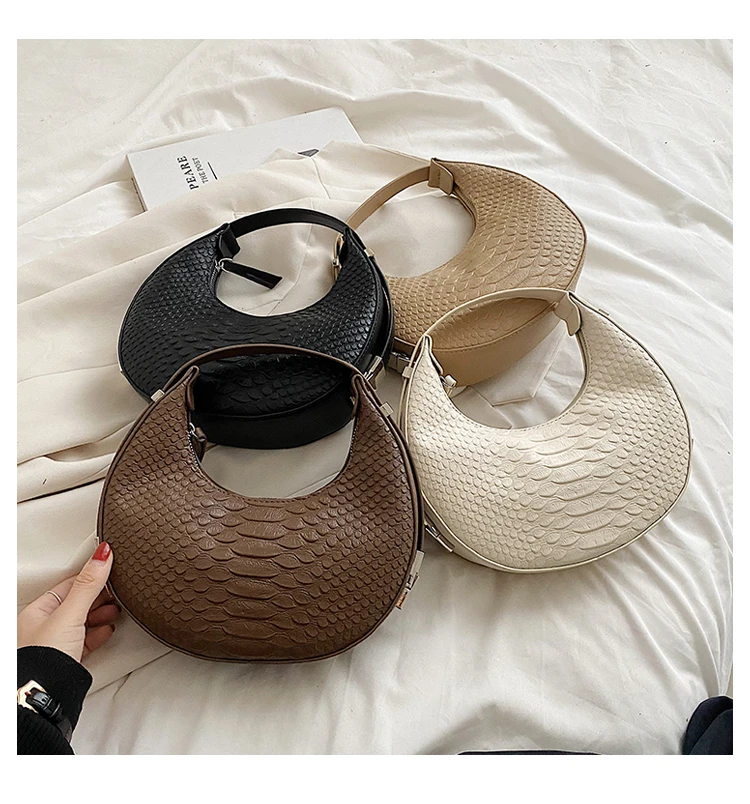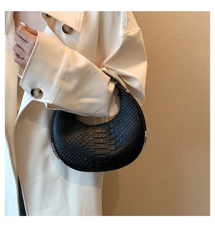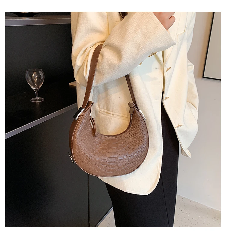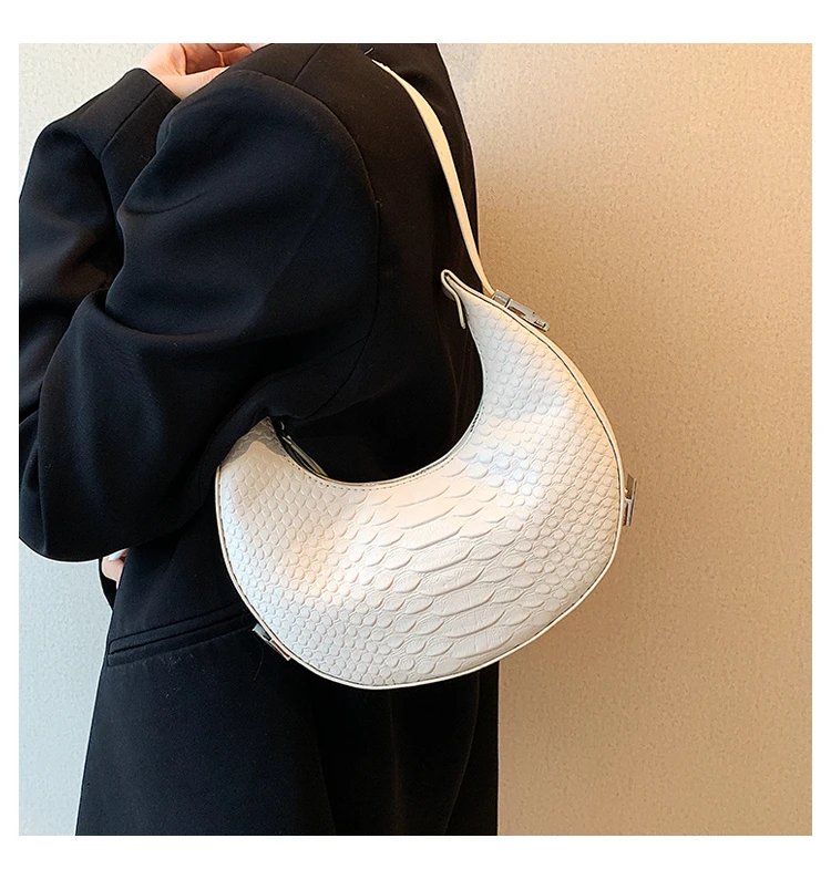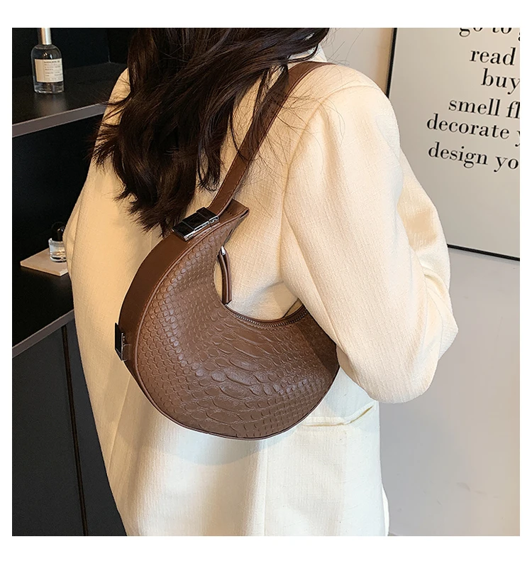 Wholesale High Quality Leather Messenger Bag Shoulder Half Moon Crocodile Pattern Ladies Luxury Handbags for Women 2022