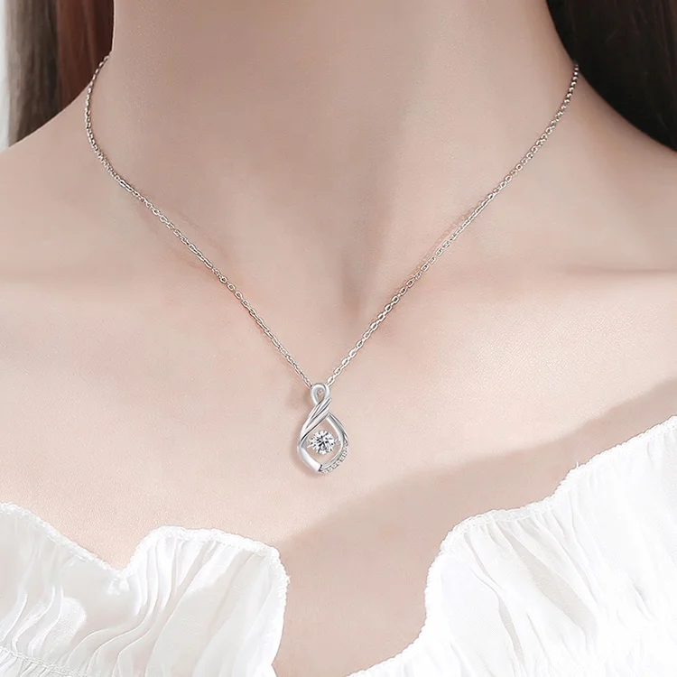 Wholesale High Quality Luxury Fine Jewelry Blue Cubic Zirconia Silver 925 Sterling Silver Pendant Necklace Jewellery