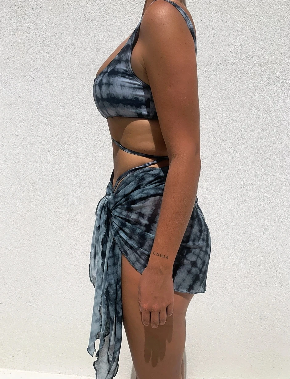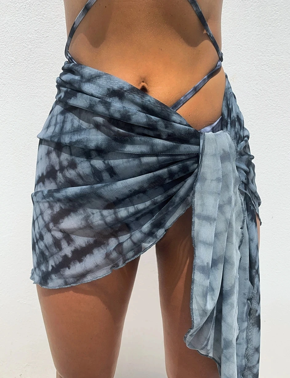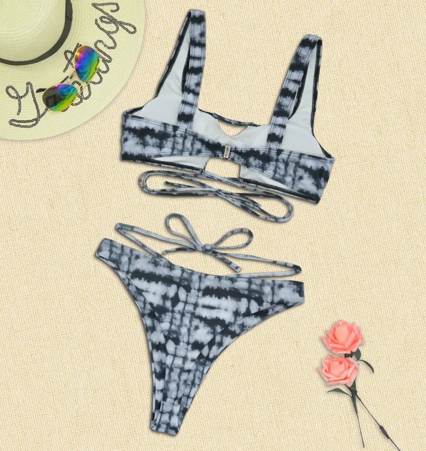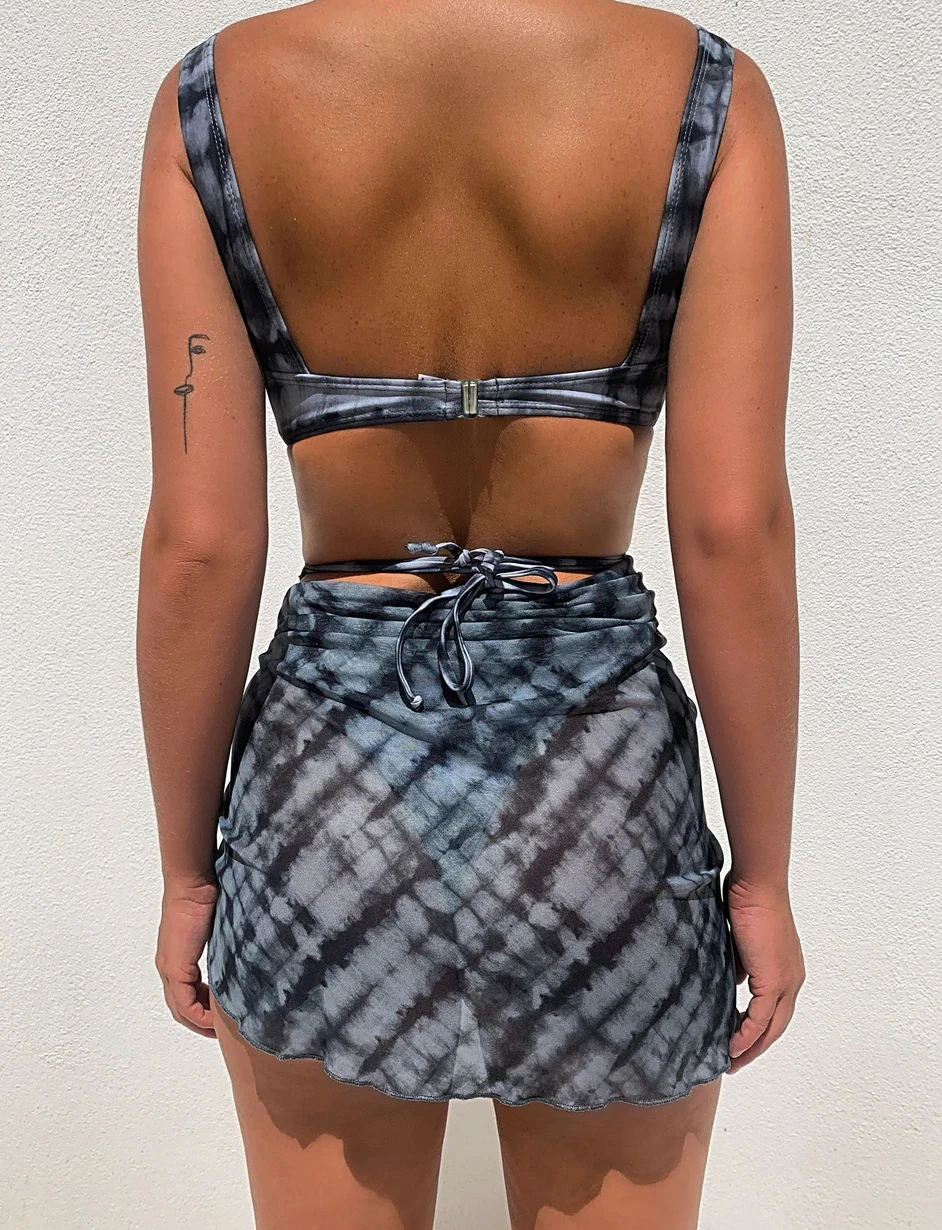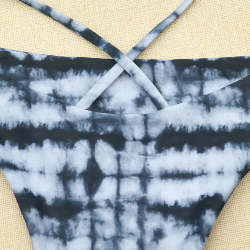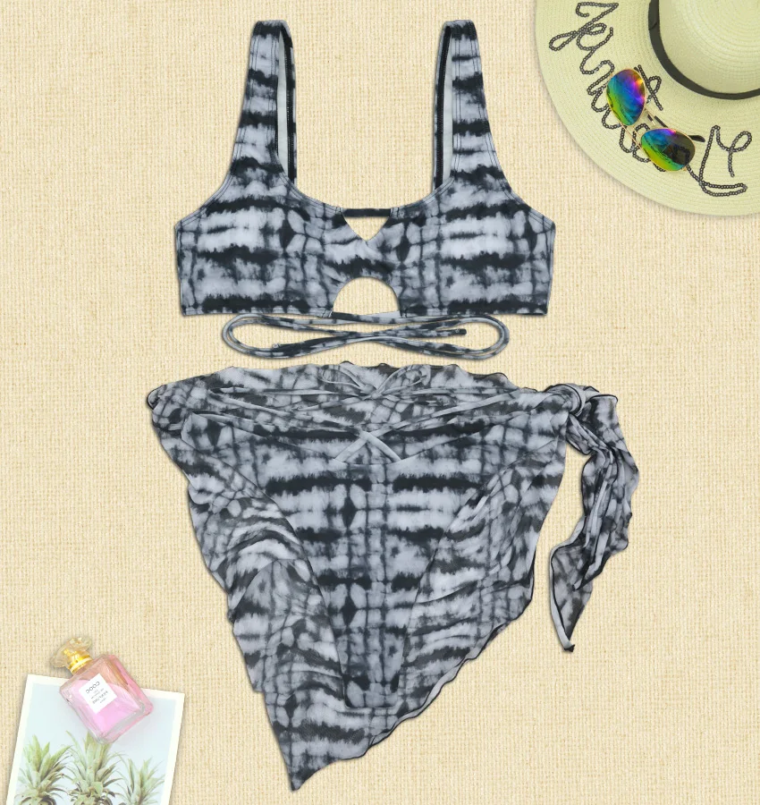 Wholesale Hot Septemper Women's Tie-dye Printed Cross-tie Chiffon Three-piece Sexy Sport Bikini Swimsuit Women Swimwear