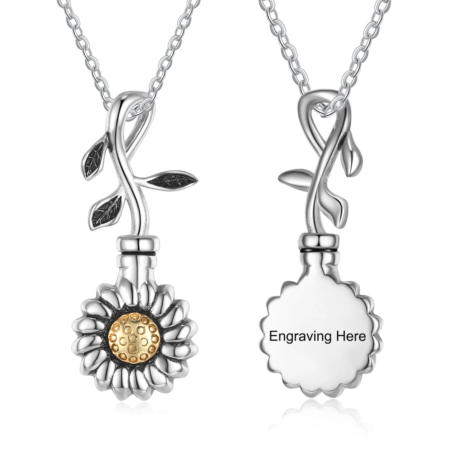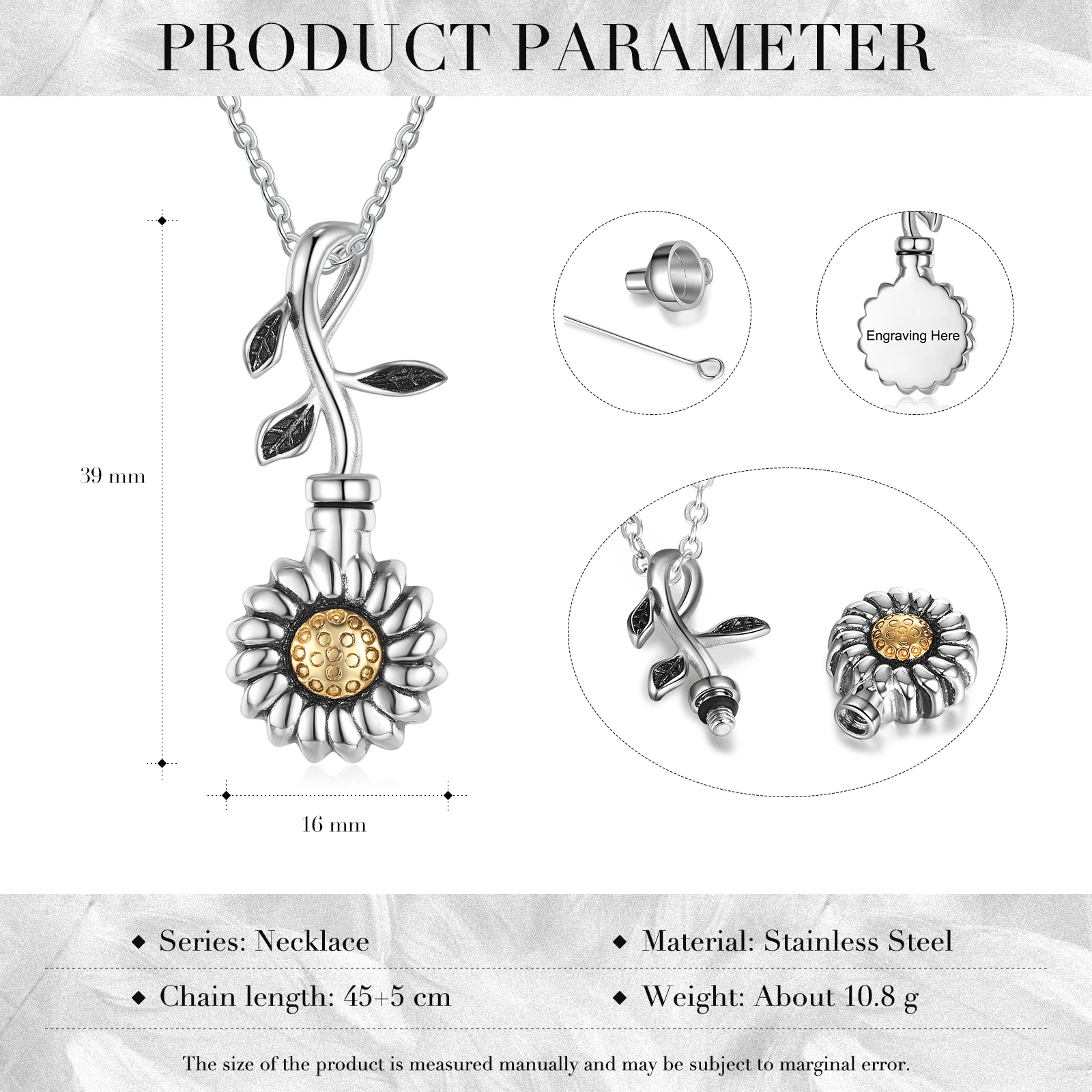 Wholesale Jewelry 45+5cm Chain Sunflower Ashes Necklace Stainless Steel Pendant Necklaces