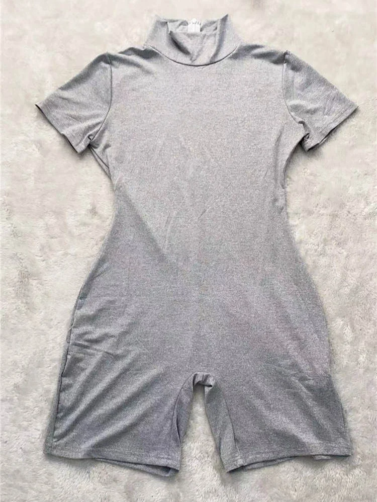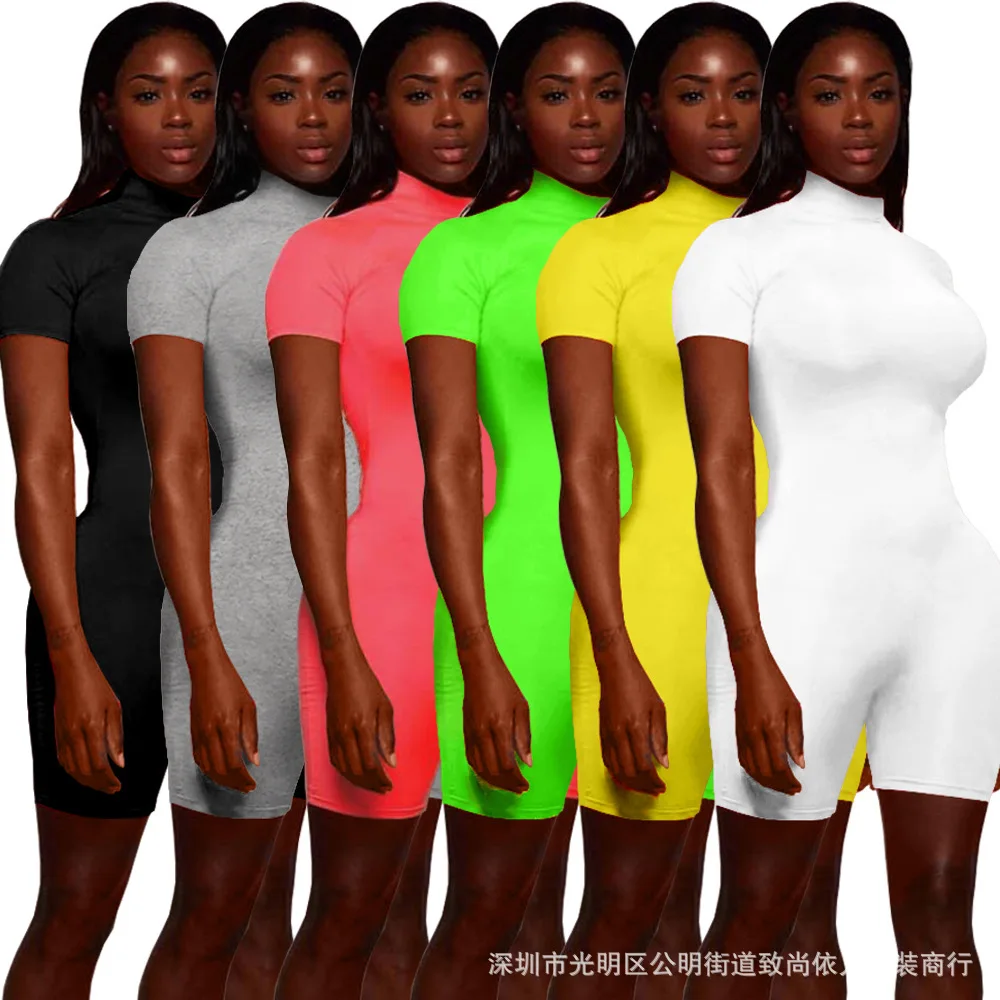Wholesale Jumpsuits Skinny Short Sleeve Turtle Neck Onesies Playsuit Jumpsuit Summer Bodysuits for Women